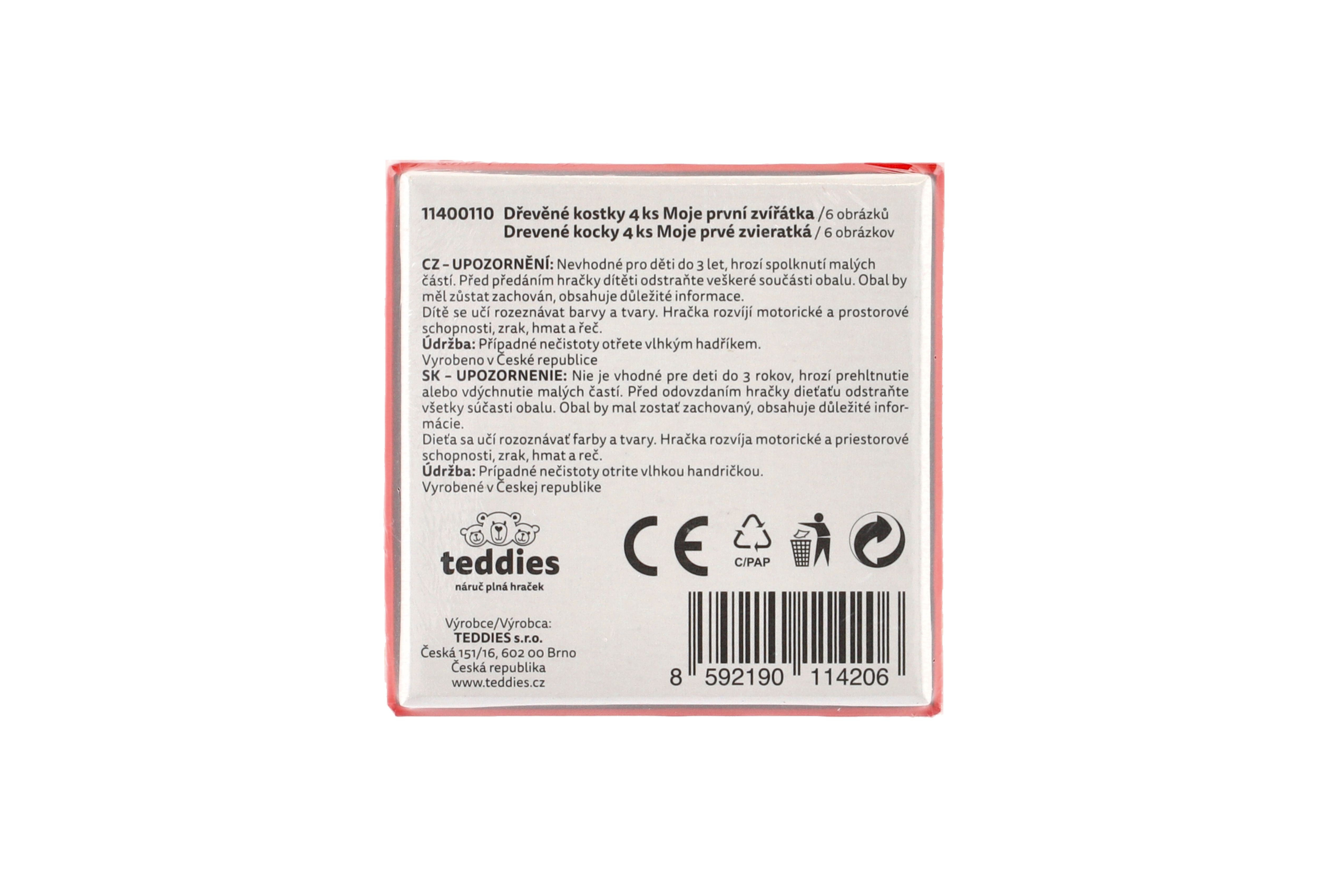 Kostky kubus čtyřkostka Moje první zvířátka dřevo 4ks v krabičce 8,5x8,5x4cm MPZ