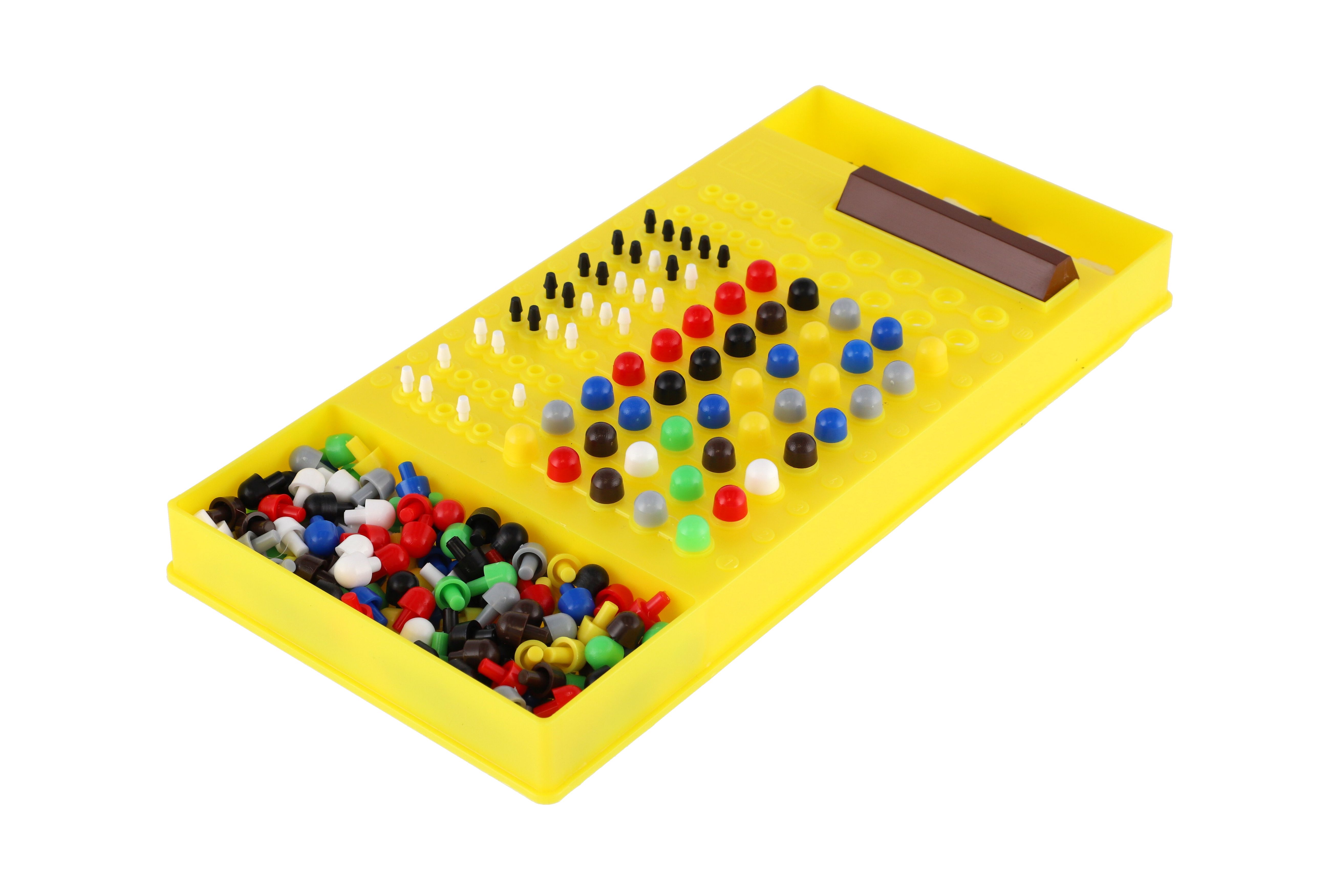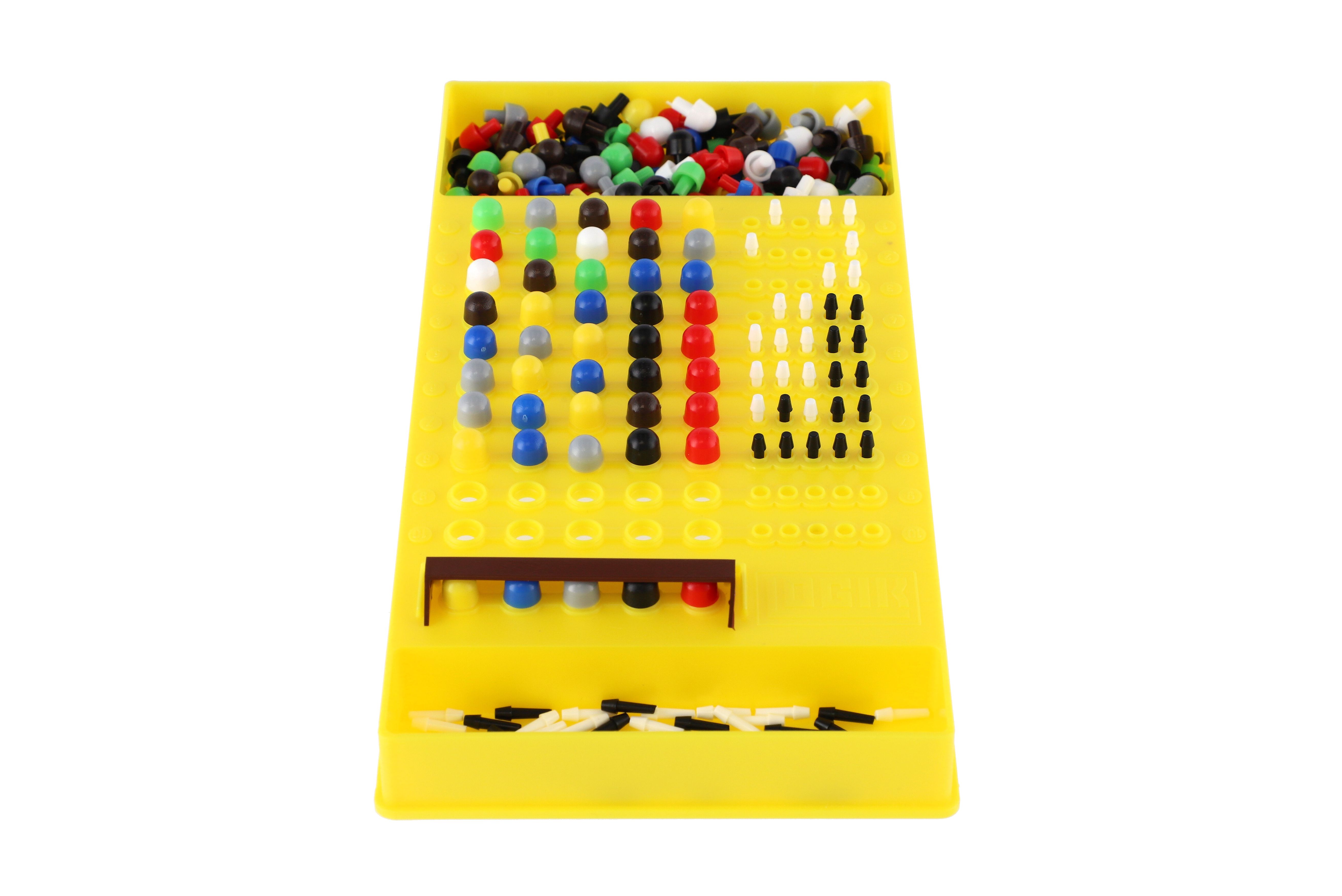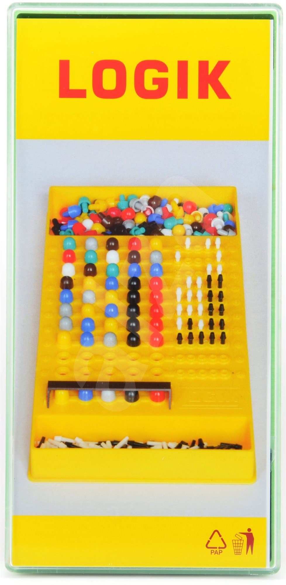 Hráč nastaví pod stříškou kombinaci z pěti barevných kolíků a druhý hráč se ji snaží během deseti pokusů odhalit, po každém kole má indicie kolik kolíků je umístěno správně. Rozměr krabice: 14 x 29 x 3 cm Vodné od 3 let
