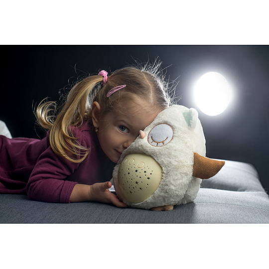 Teddies Sovička Usínáček plyš 25cm na baterie se světlem se zvukem v krabici 22x26x17cm 0m+
