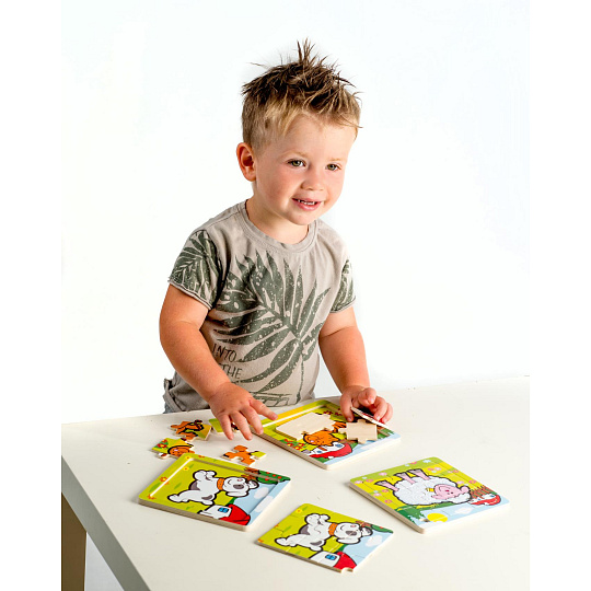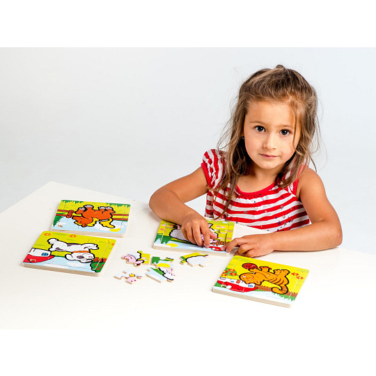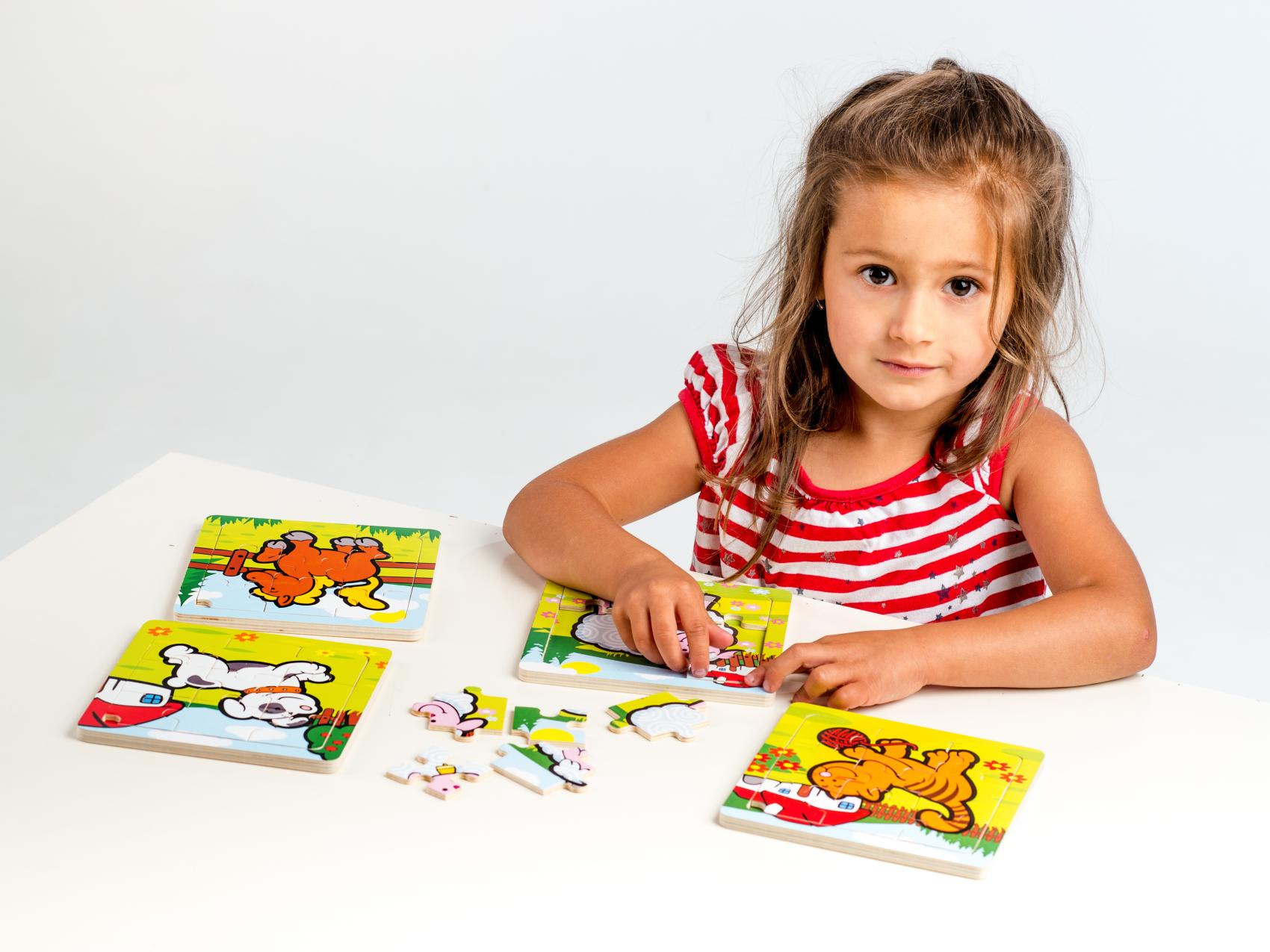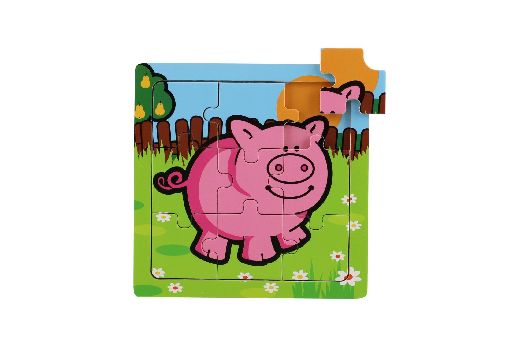 Mini puzzle dřevěné 9 dílků Moje první zvířátka pro nejmenší 15x15x0,8cm 6 druhů MPZ 12m+