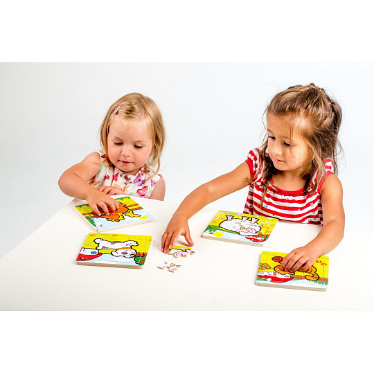 Oblíbená zvířátka z řady Moje první zvířátka jako puzzle. Vybrat si můžete ze šesti druhů. Puzzle obsahuje 9 dílků Rozměr puzzle: 15 x 15 cm Vhodné od 12 měsíců