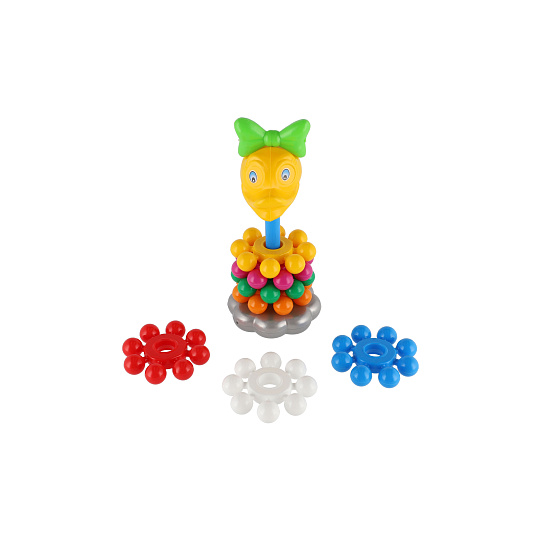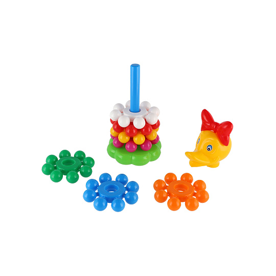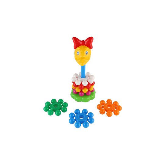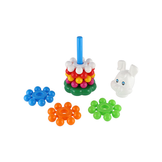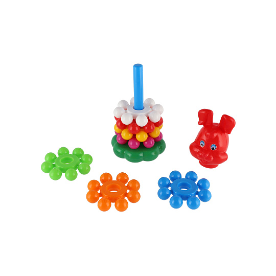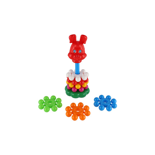Skládanka s kroužky, ze které lze postavit pyramidu, si oblíbí každé dítě. Pyramida s barevnými kroužky pomáhá v rozvoji jemné motoriky a poznávání barviček. Velikost 26 cm. Vhodné od 12 měsíců.