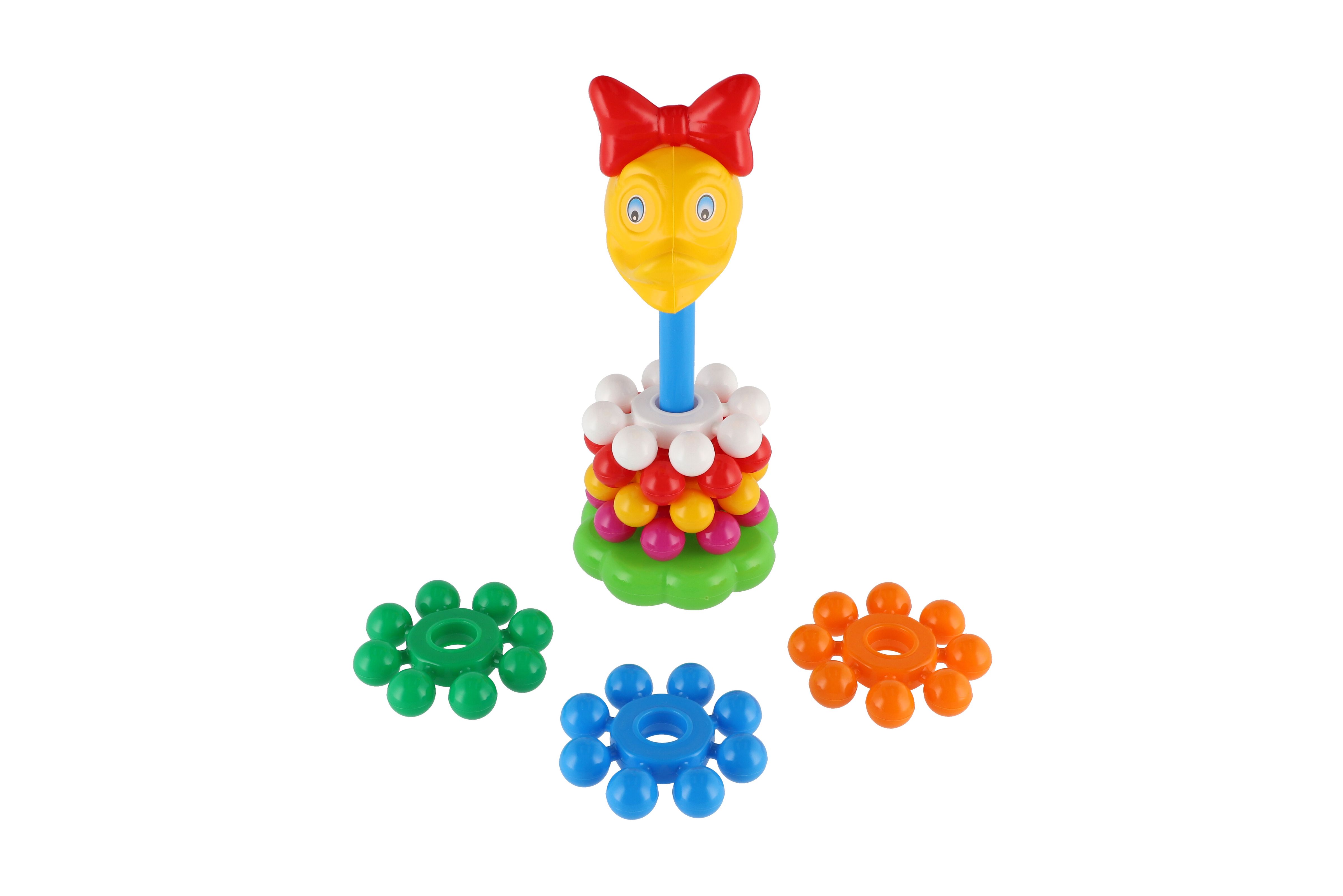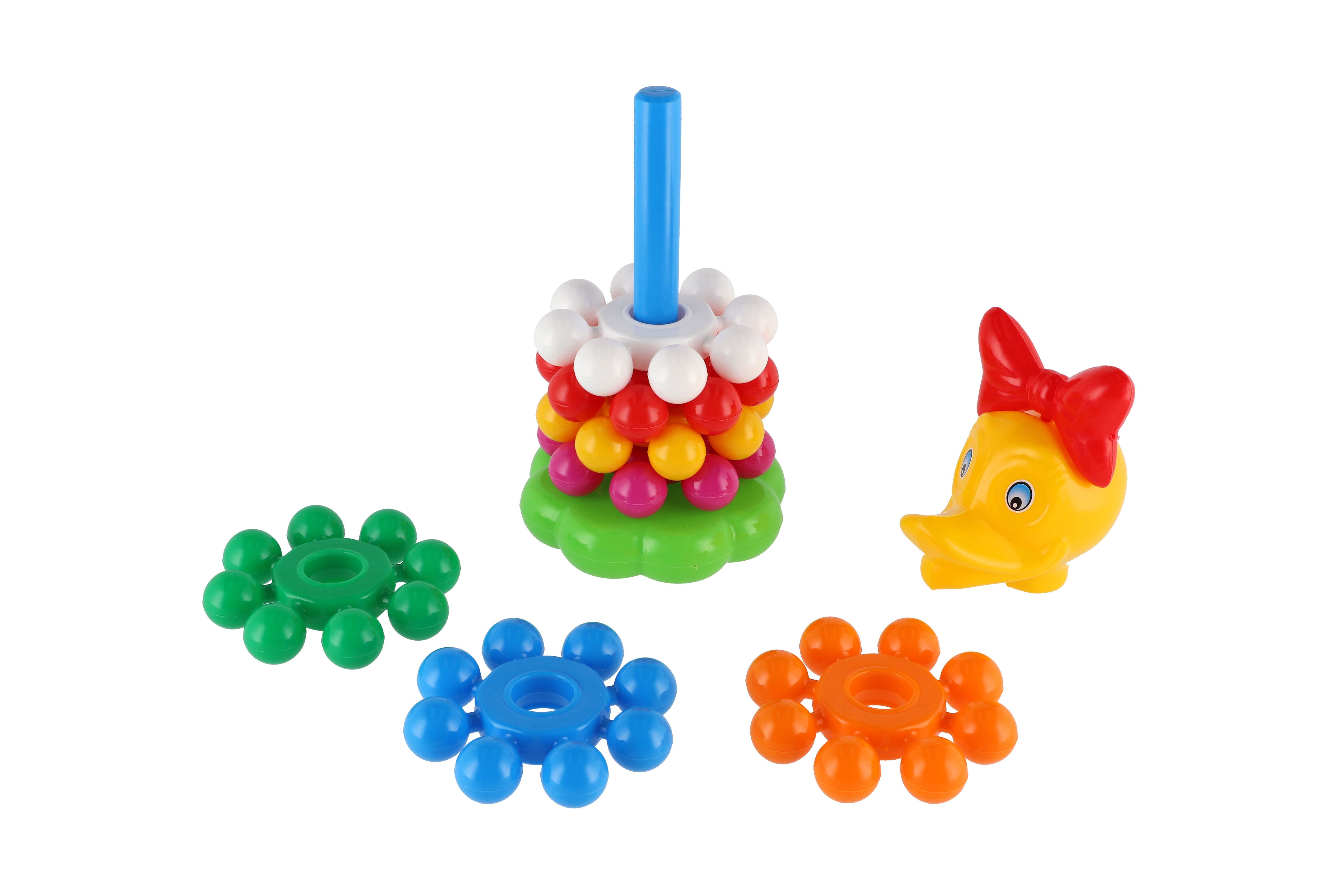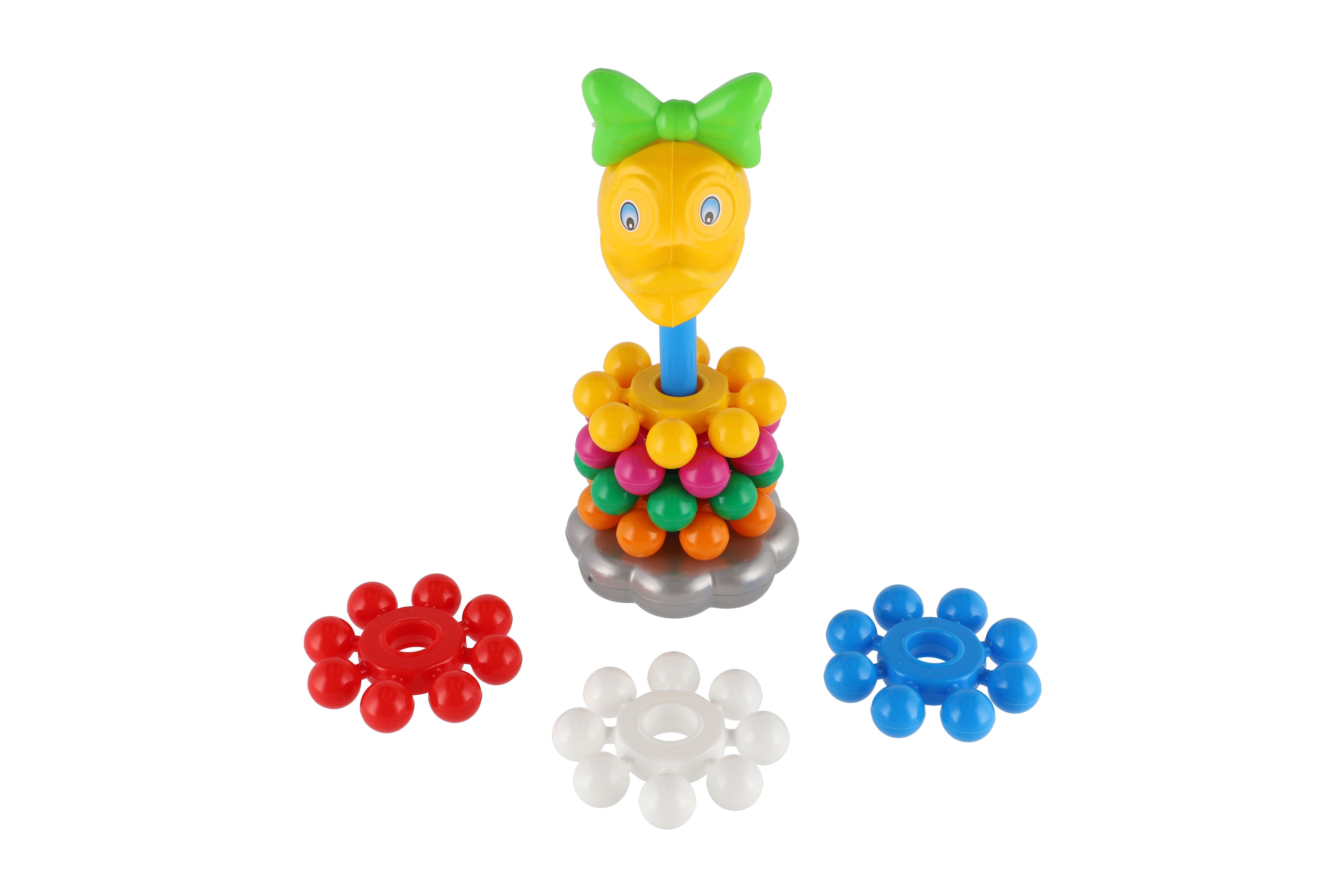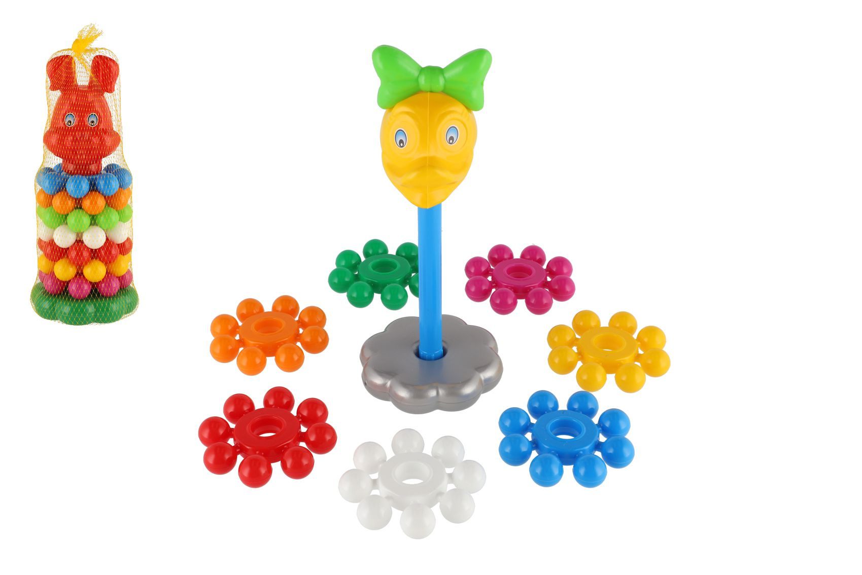 Skládanka pyramida s kroužky plast 26cm 3 druhy v síťce 12m+