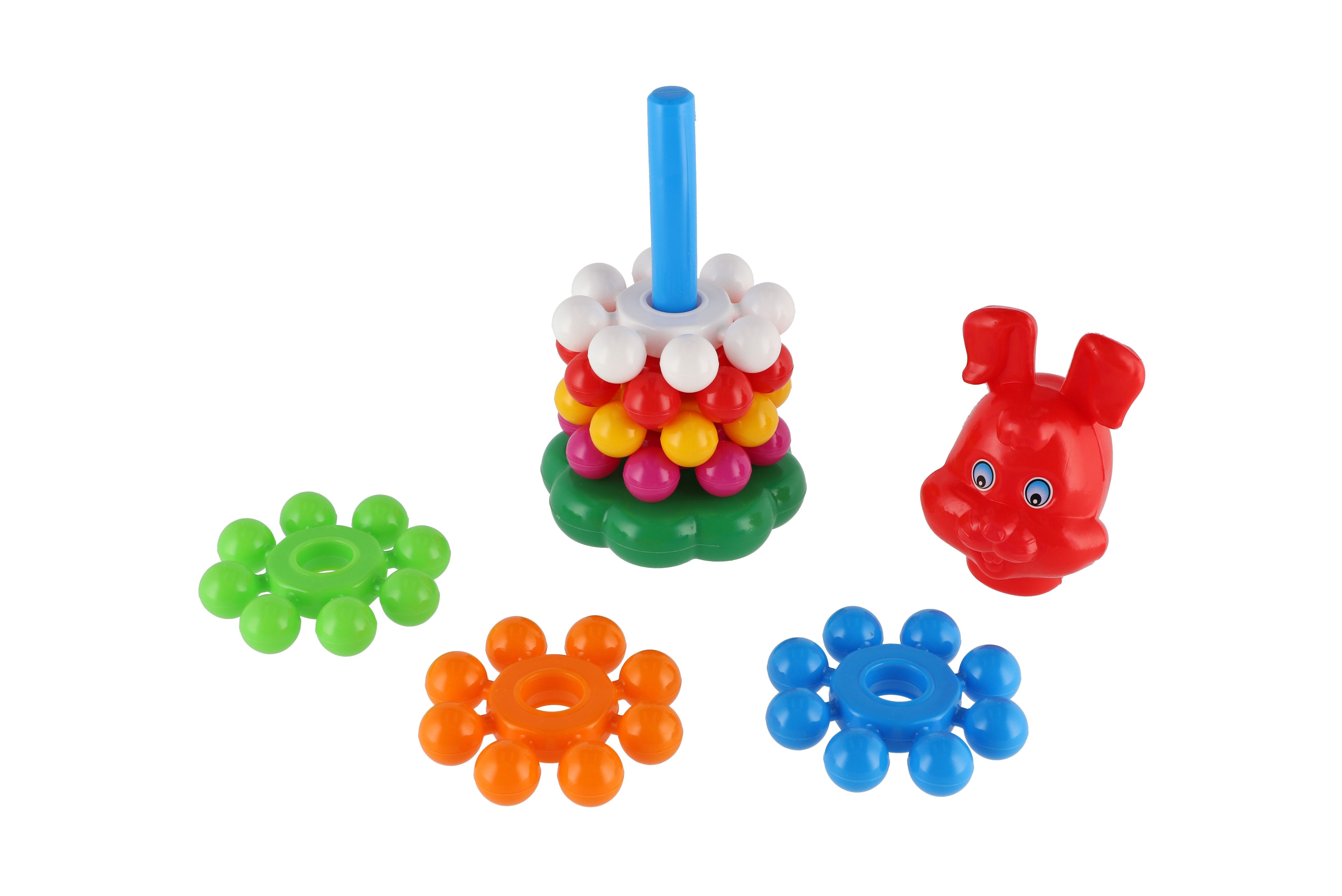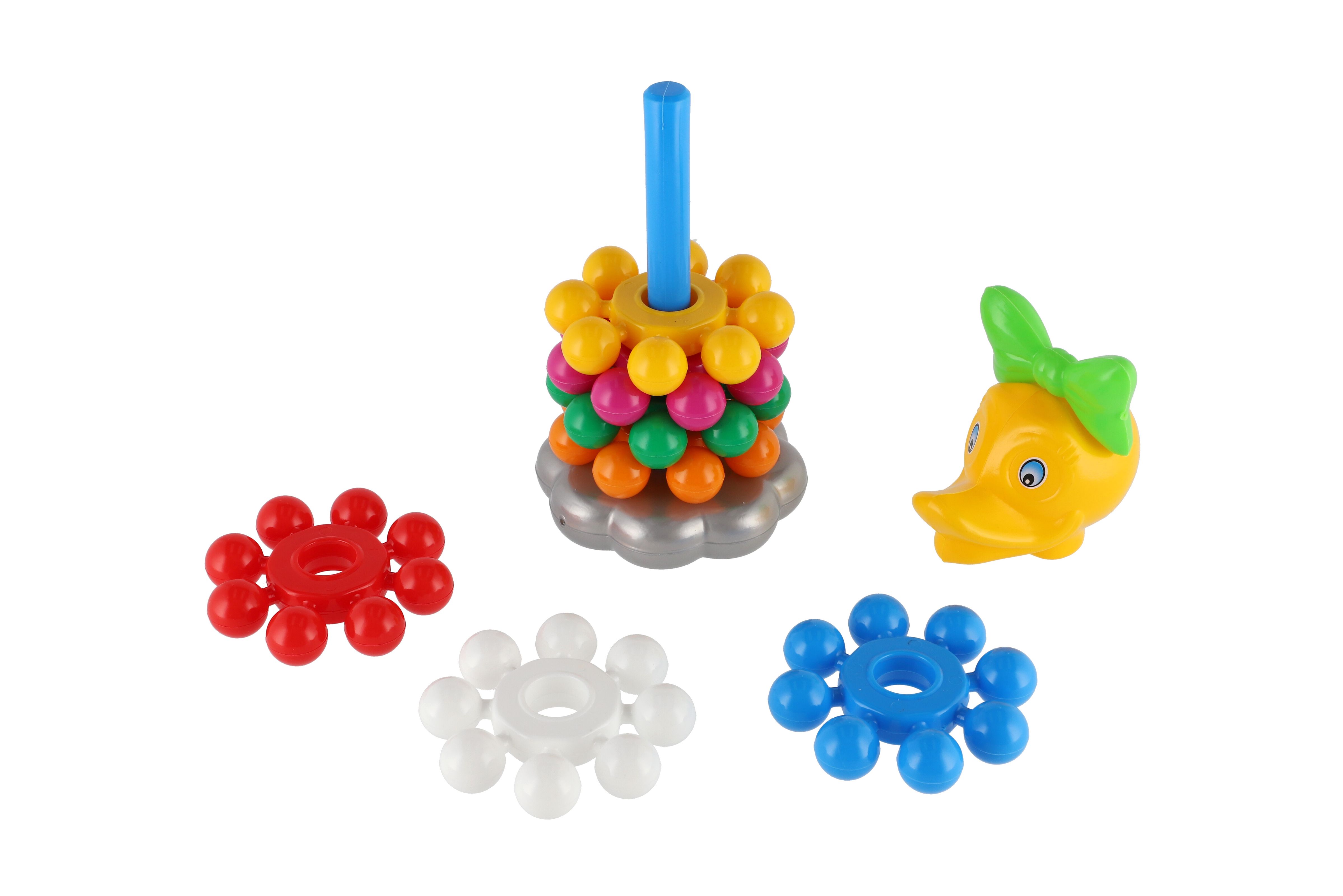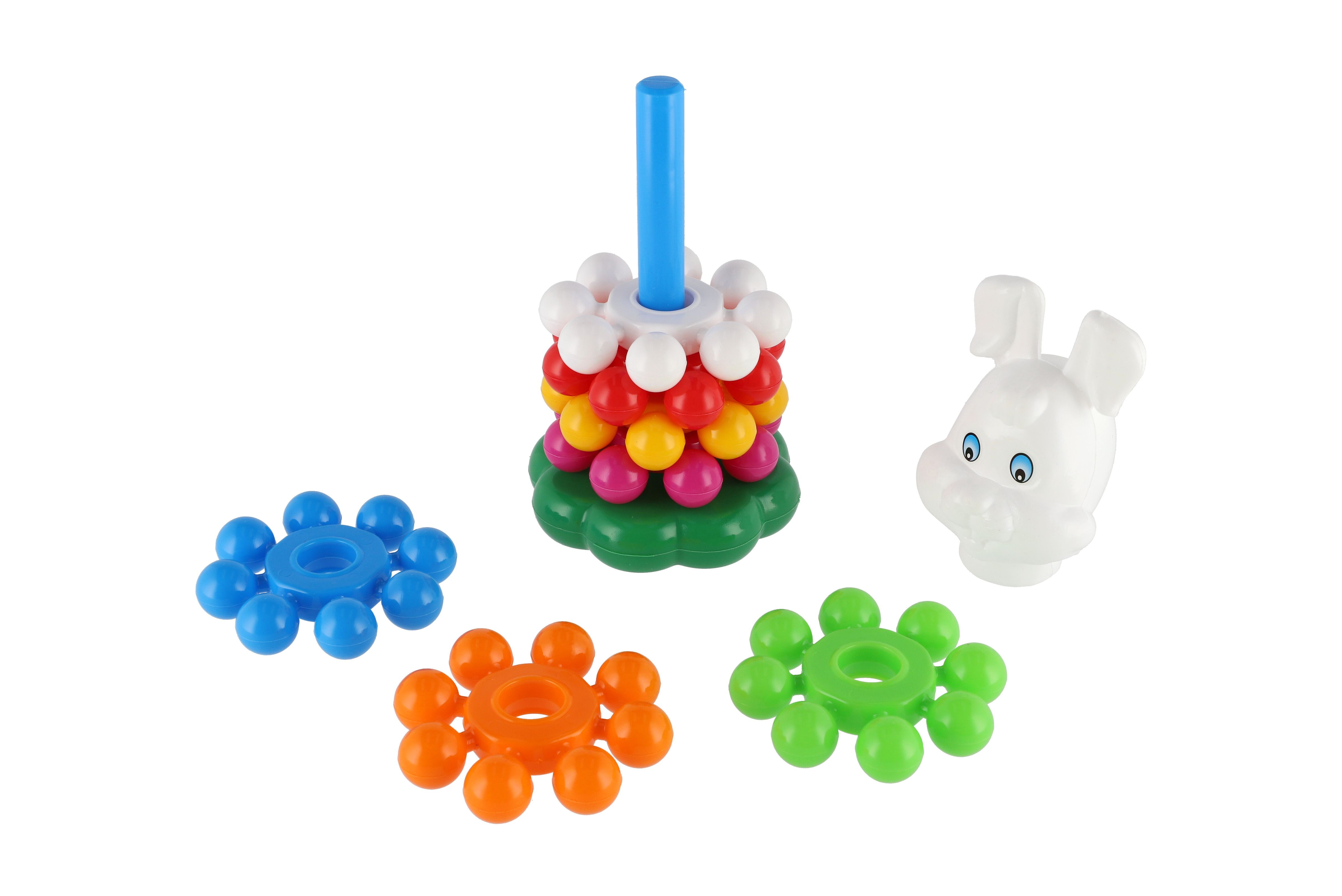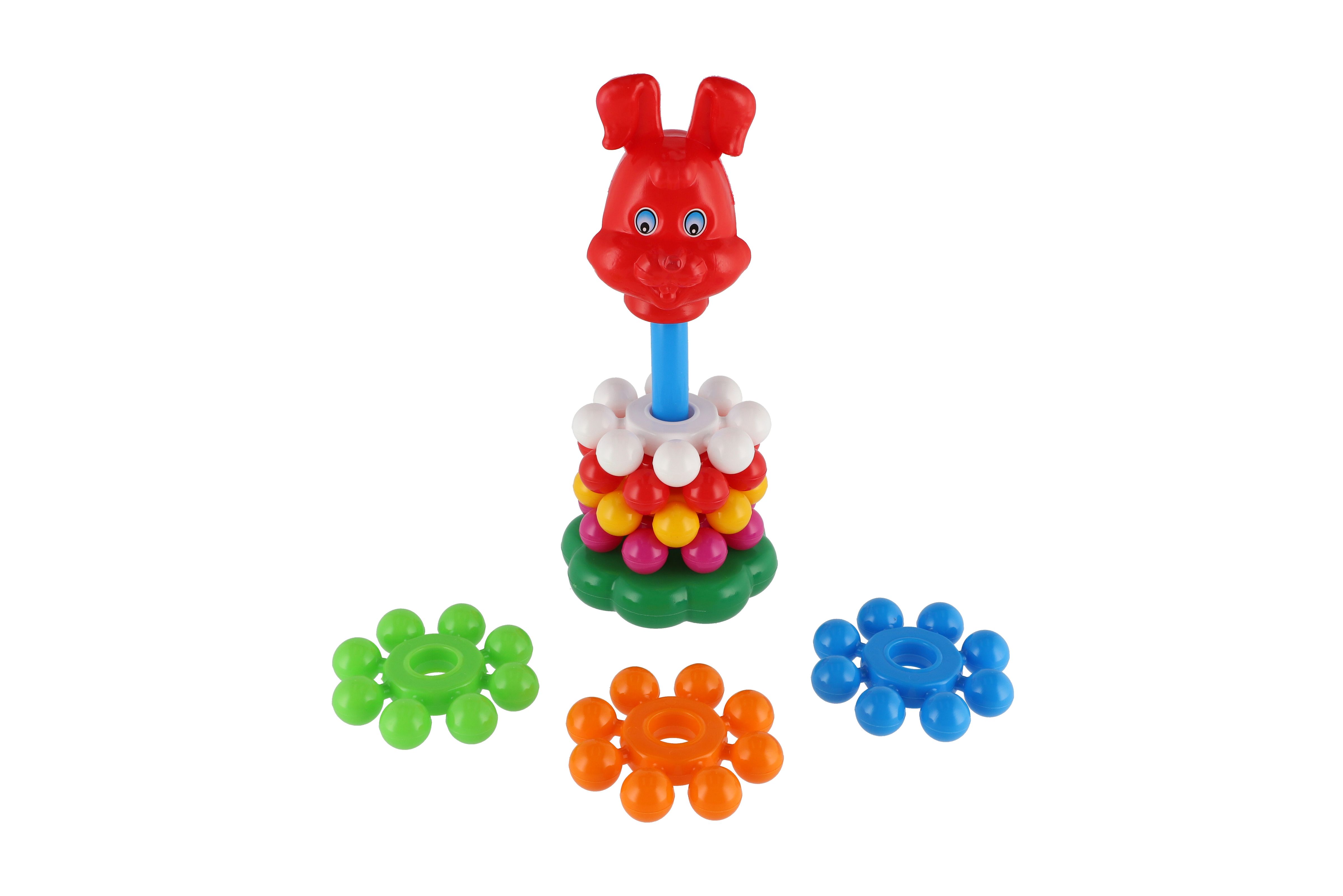 Skládanka s kroužky, ze které lze postavit pyramidu, si oblíbí každé dítě. Pyramida s barevnými kroužky pomáhá v rozvoji jemné motoriky a poznávání barviček. Velikost 26 cm. Vhodné od 12 měsíců.