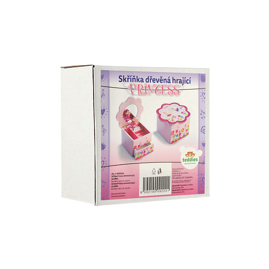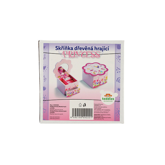 Skříňka šperkovnice Princess dřevo hrající květina zásuvka 14,5x8x14,5cm