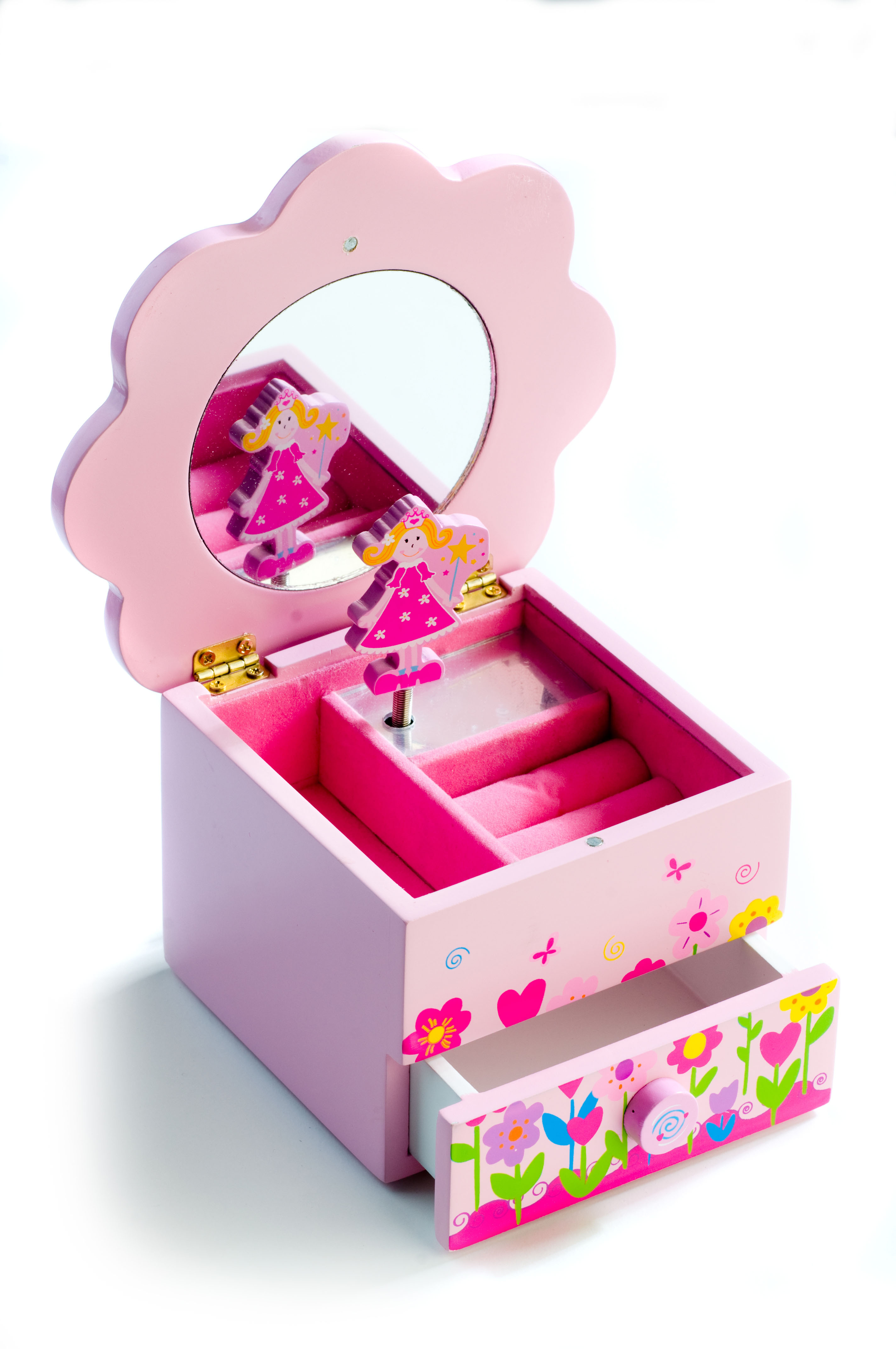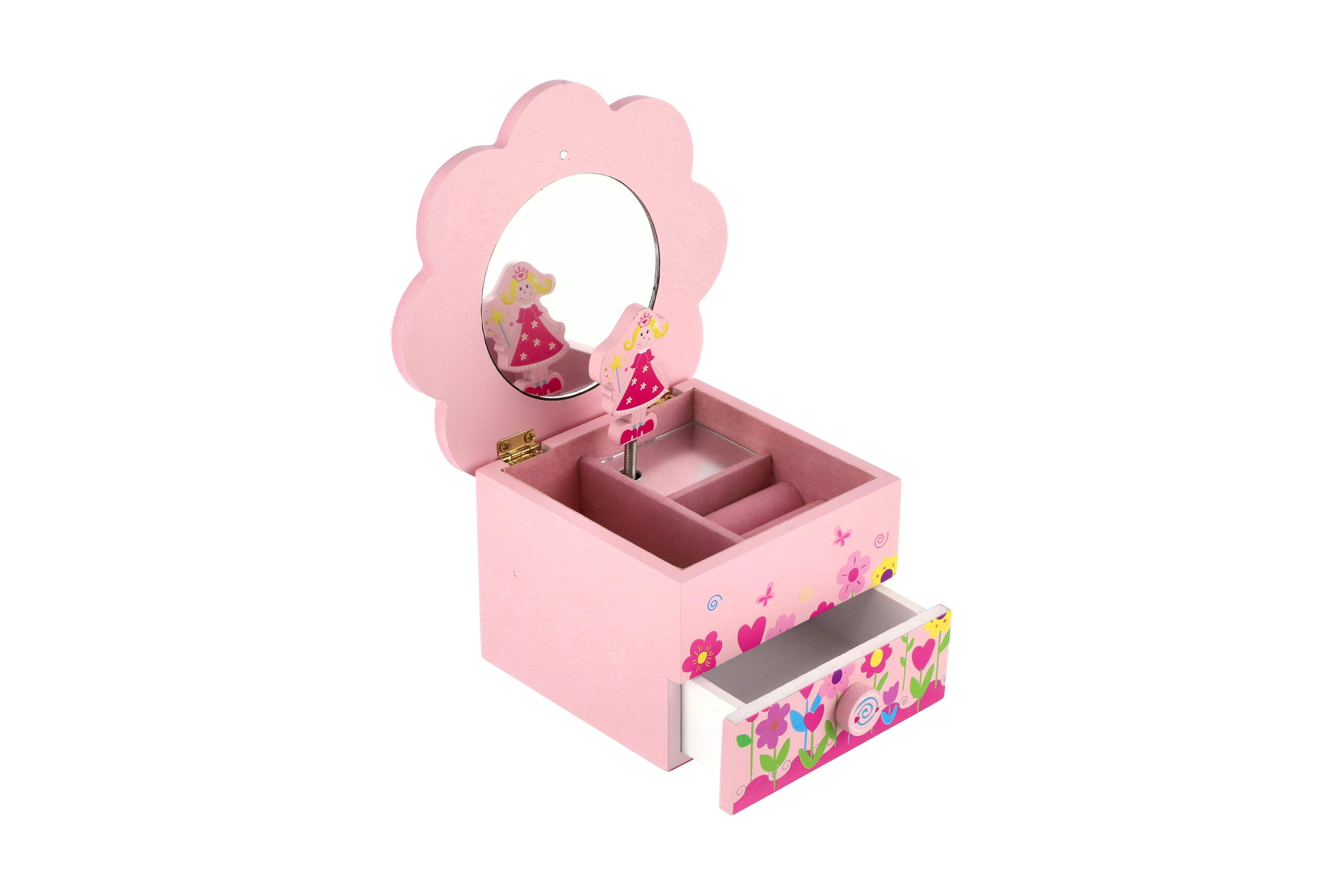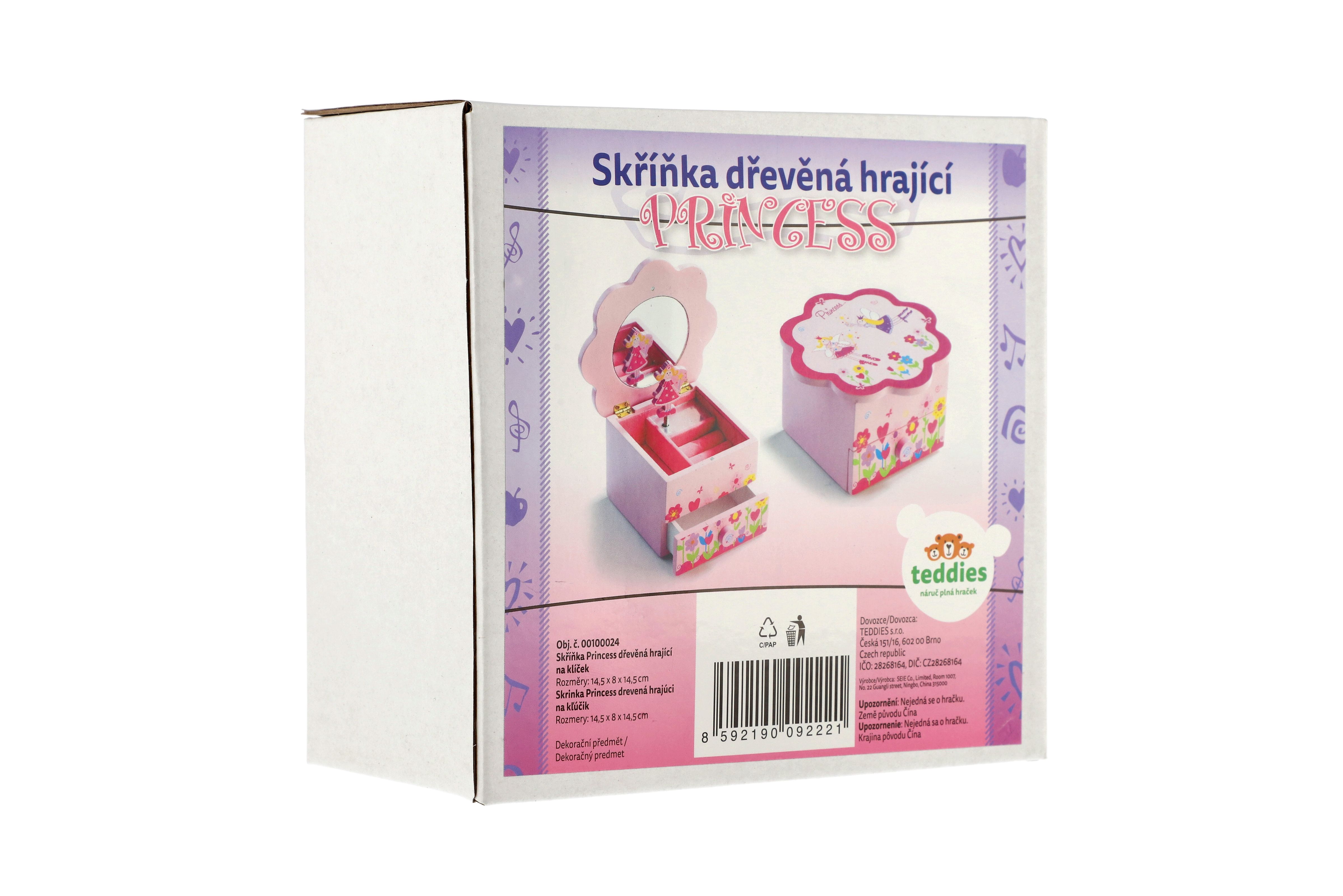 Skříňka šperkovnice Princess dřevo hrající květina zásuvka 14,5x8x14,5cm
