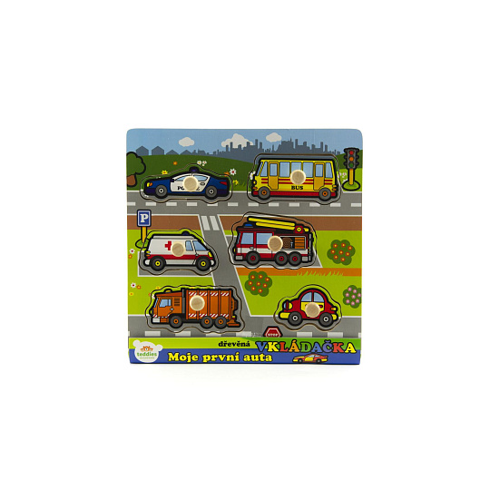 Teddies Vkládačka Moje první auta dřevo 6ks 22,5x22,5x2,5 cm 12m+ MPZ