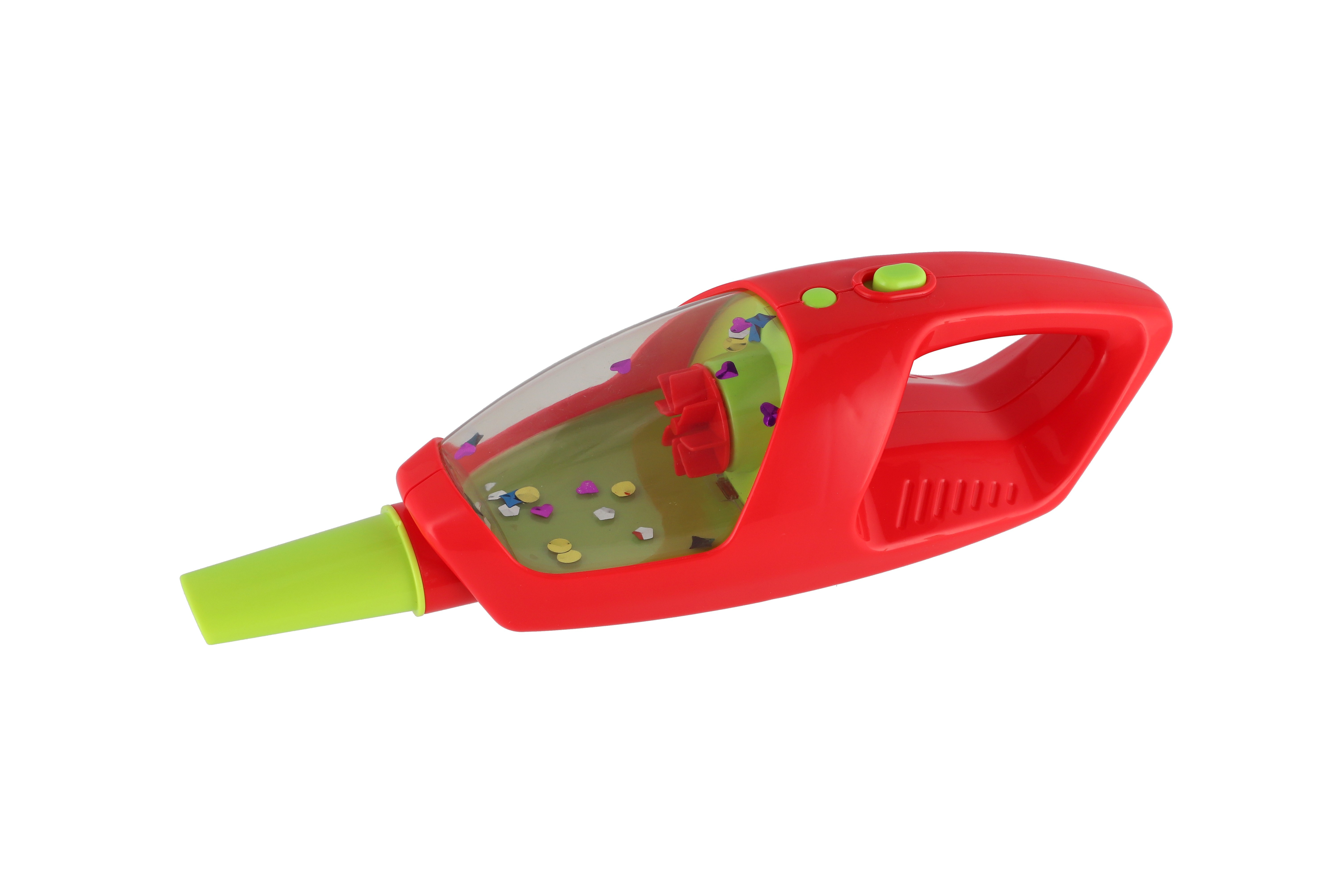 Děti si mohou hrát na vysávání pokojíčku, jako kdyby to byl opravdový vysavač. Vysavač vydává zvukové a světelné efekty, v průhledném válci se během vysávání víří barevné papírky. Rozměr krabice 24 x 54 x 13 cm Vhodné od 24 měsíců