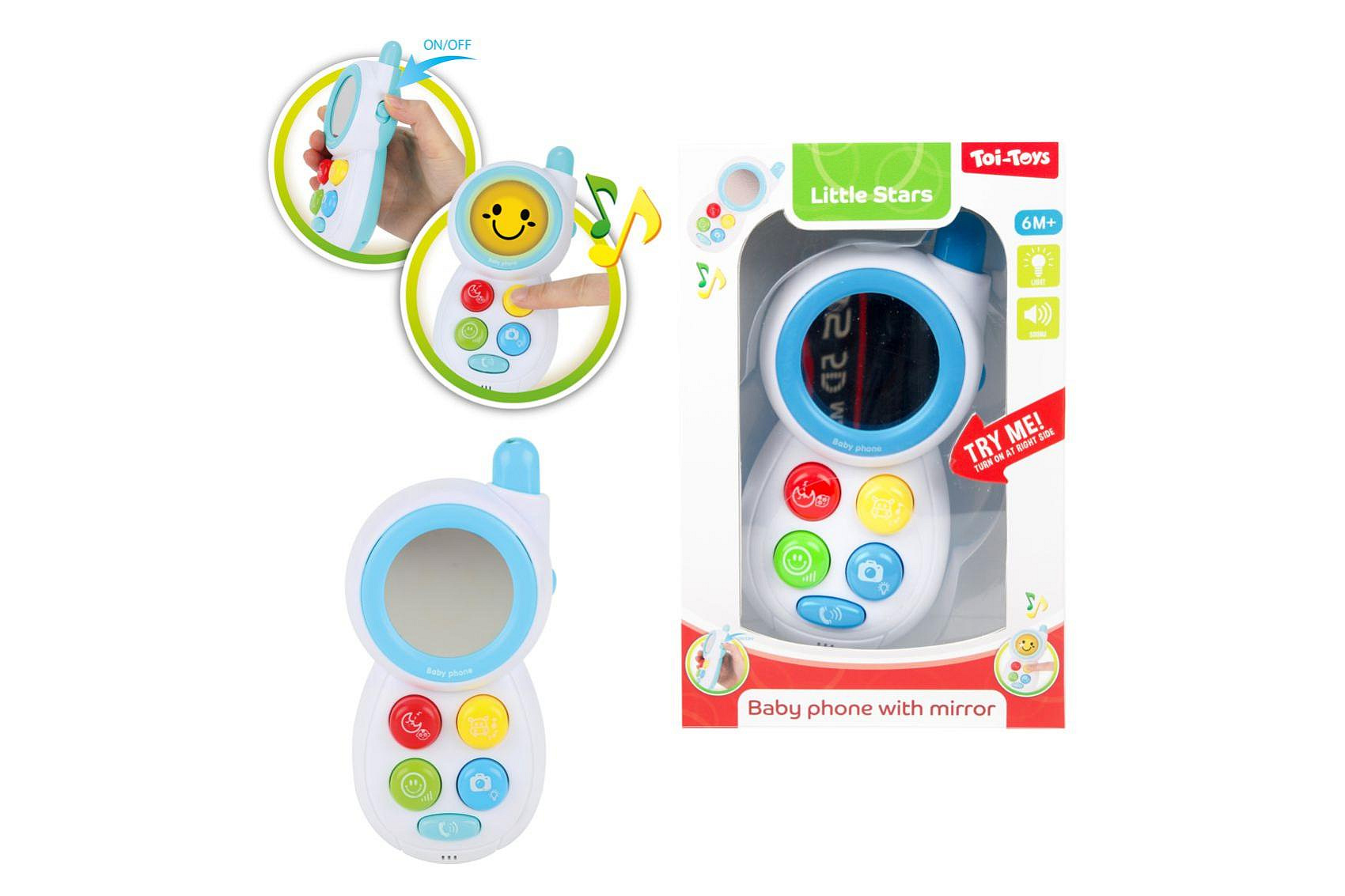 Telefon mobil pro nejmenší se zrcátkem plast na baterie se světlem se zvukem v krabičce 13x19cm 6m+