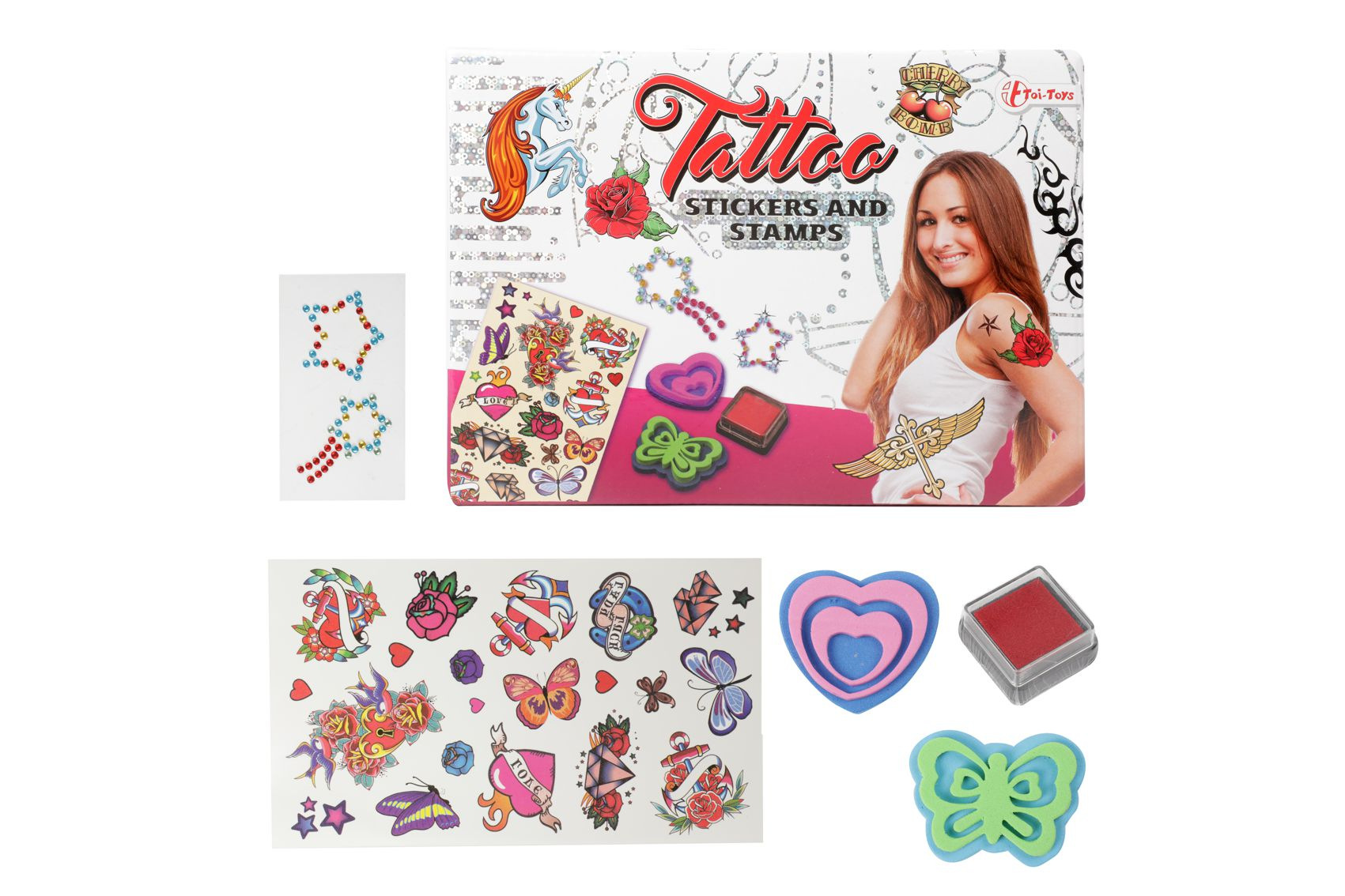 Teddies Tetování s doplňky + razítka 2ks v krabici 22x16x3,5cm
