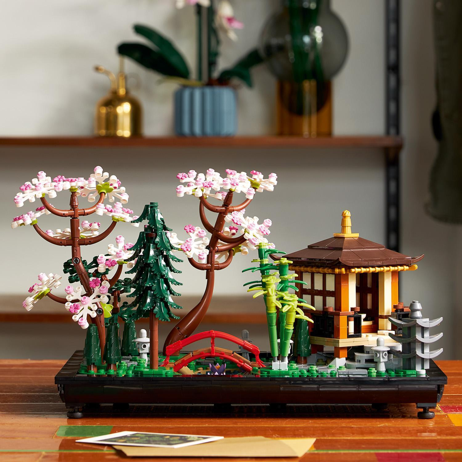 Tento sestavitelný model je inspirován tradiční japonskou zahradou a obsahuje klenutý most, potůček, kapra koi, lotosové květy, stromy, kameny, kamenné lampy a pavilon s detailní místností pro čajové ceremonie.