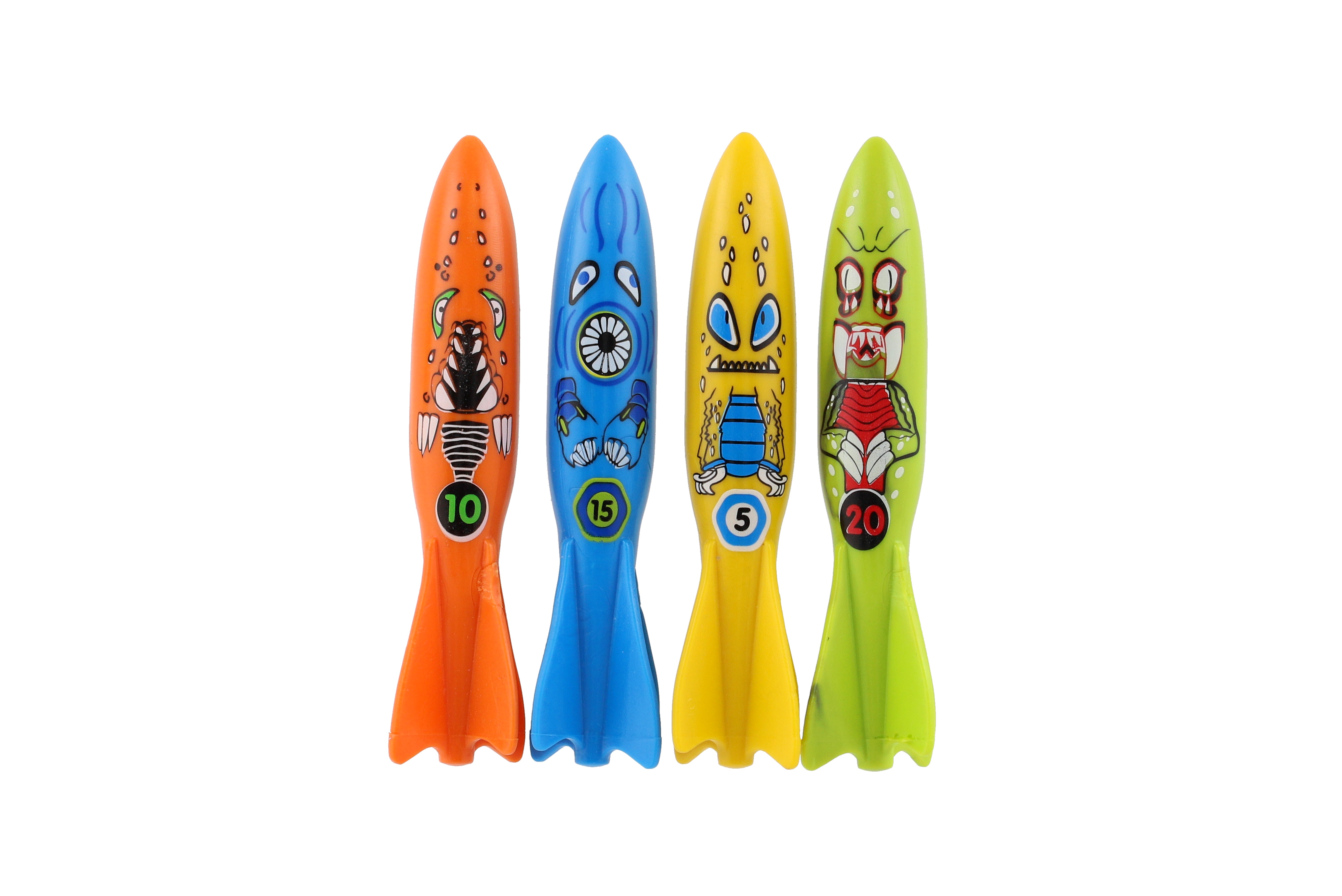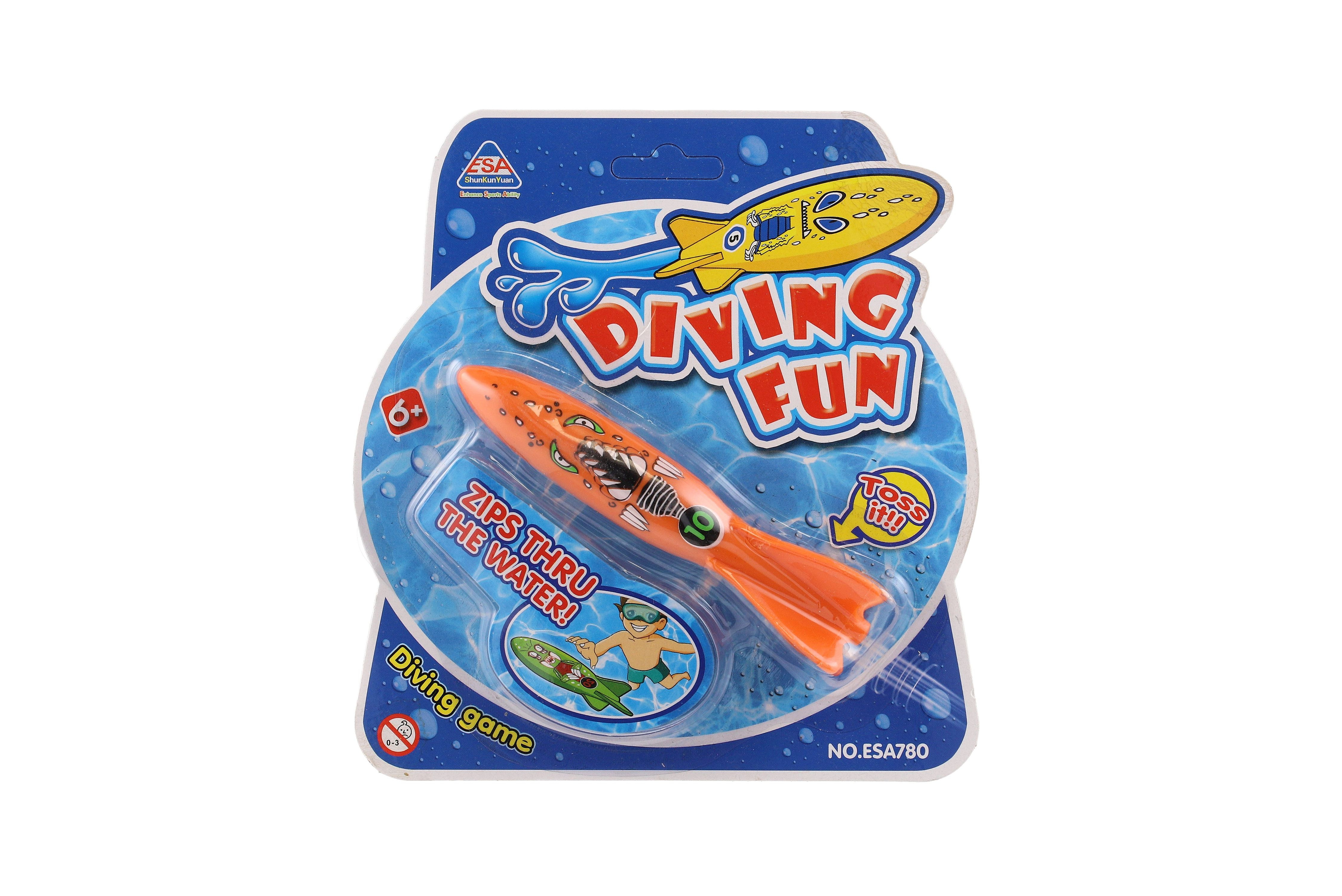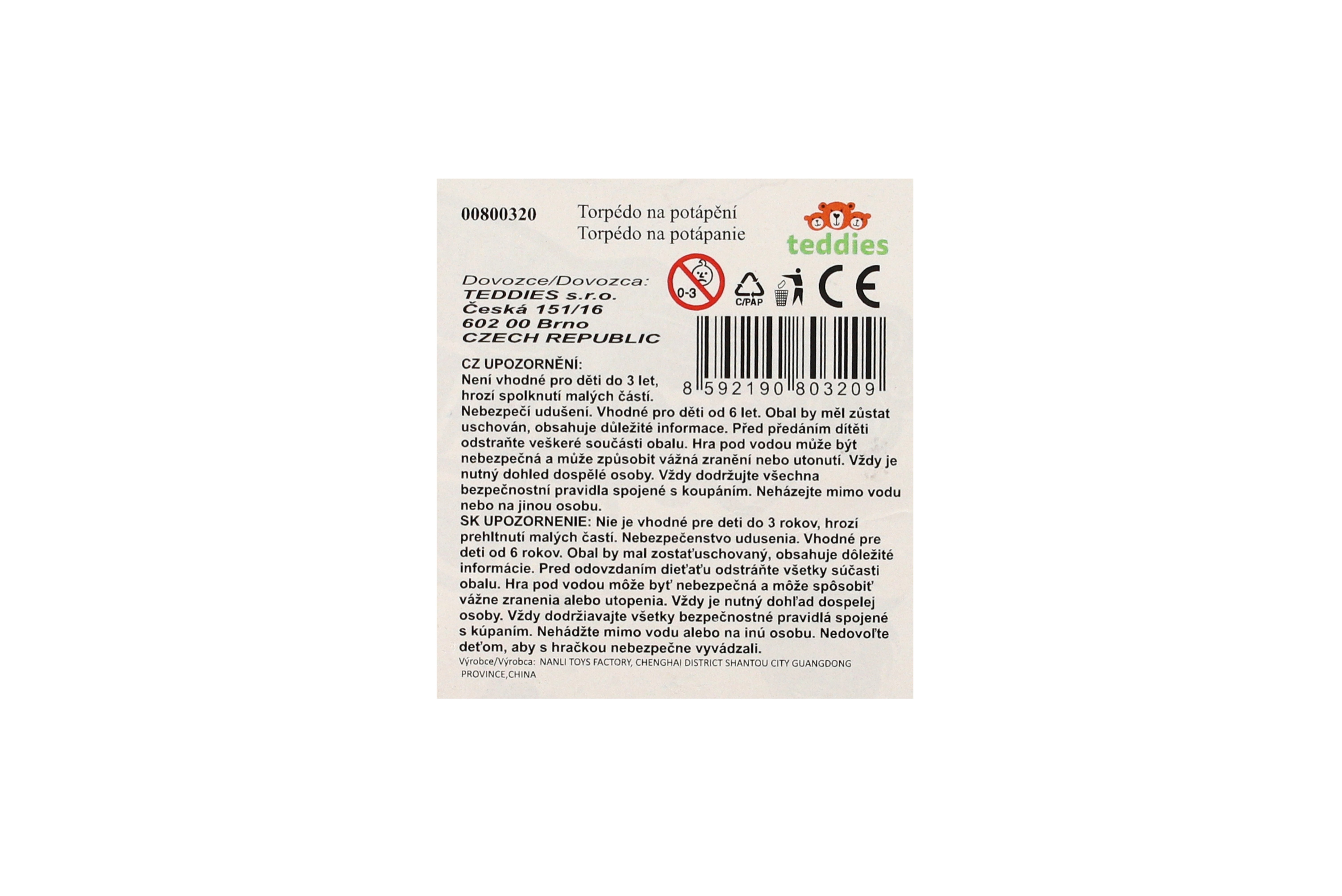 Vhodné pro zpestření plaveckého a potápěčského výcviku nebo využití v domácím bazénu. Velikost torpéda 13 cm. Rozměry balení 17 x 18 x 2 cm. Vhodné pro děti od 6 let.
