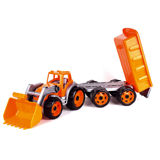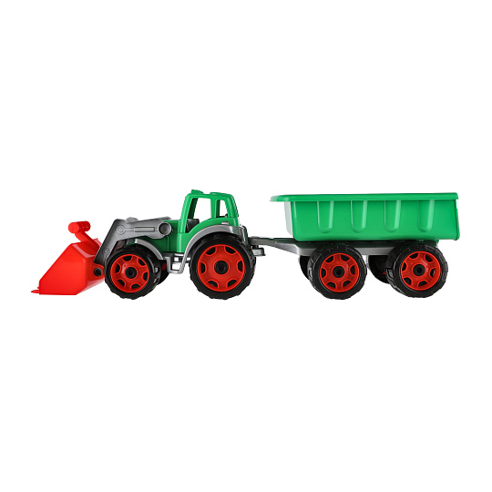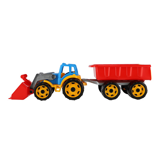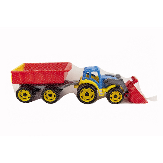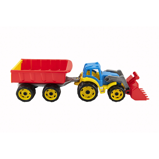 Barevný traktor s vlekem a lžící je vhodný pro každého malého zemědělce a je vyroben z kvalitního a odolného plastu. Užijte si spoustu zábavy s tímto traktorem také na pískovišti, který děti zabaví na dlouhé hodiny. Můžete převážet náklad z jedné strany pískoviště na druhou. Rozměry výrobku 61 x 16 x 16 cm. Vhodné pro děti od 3 let.