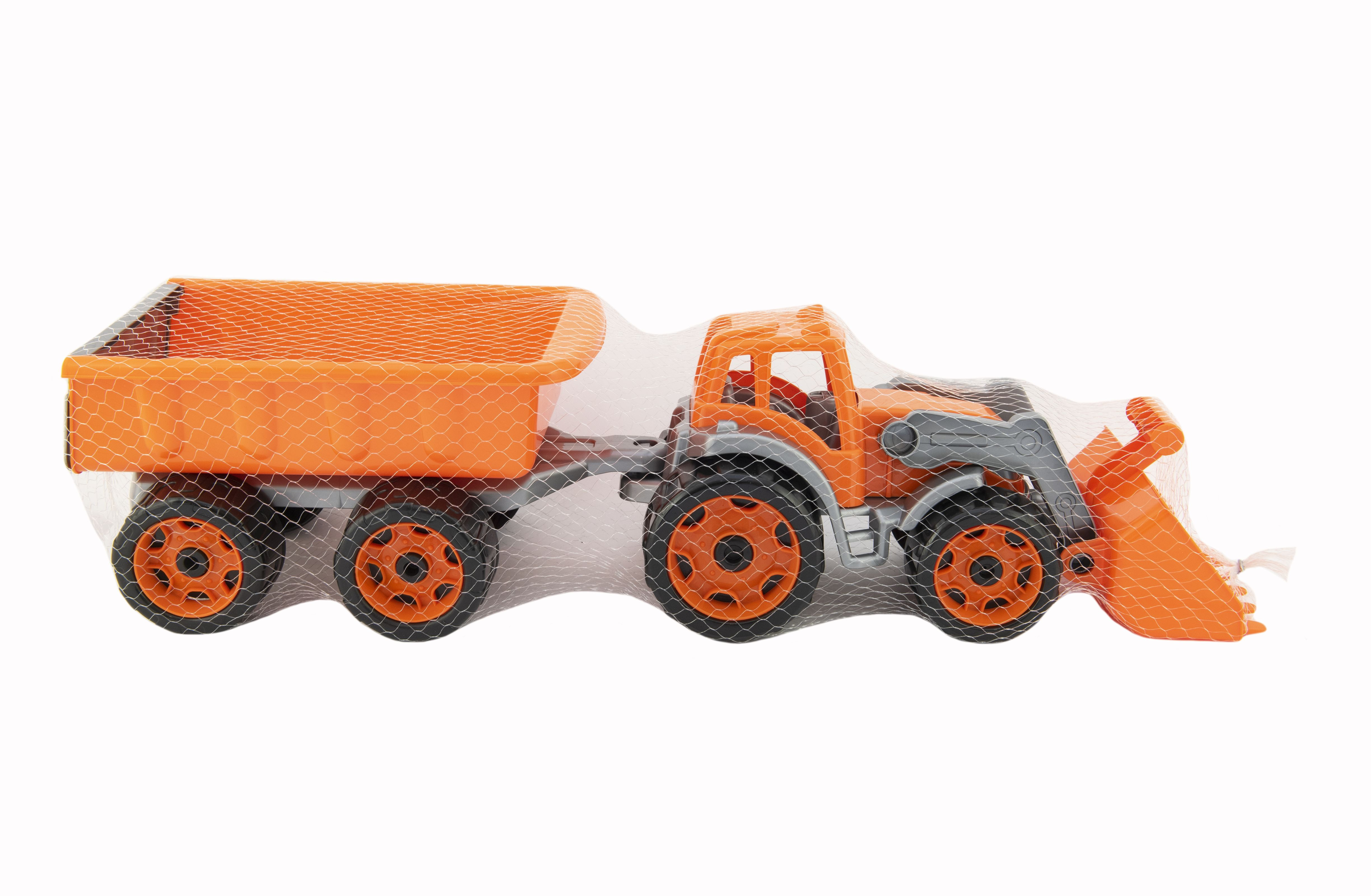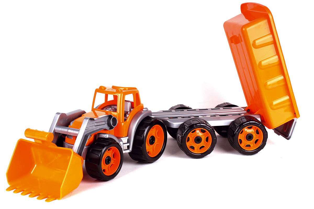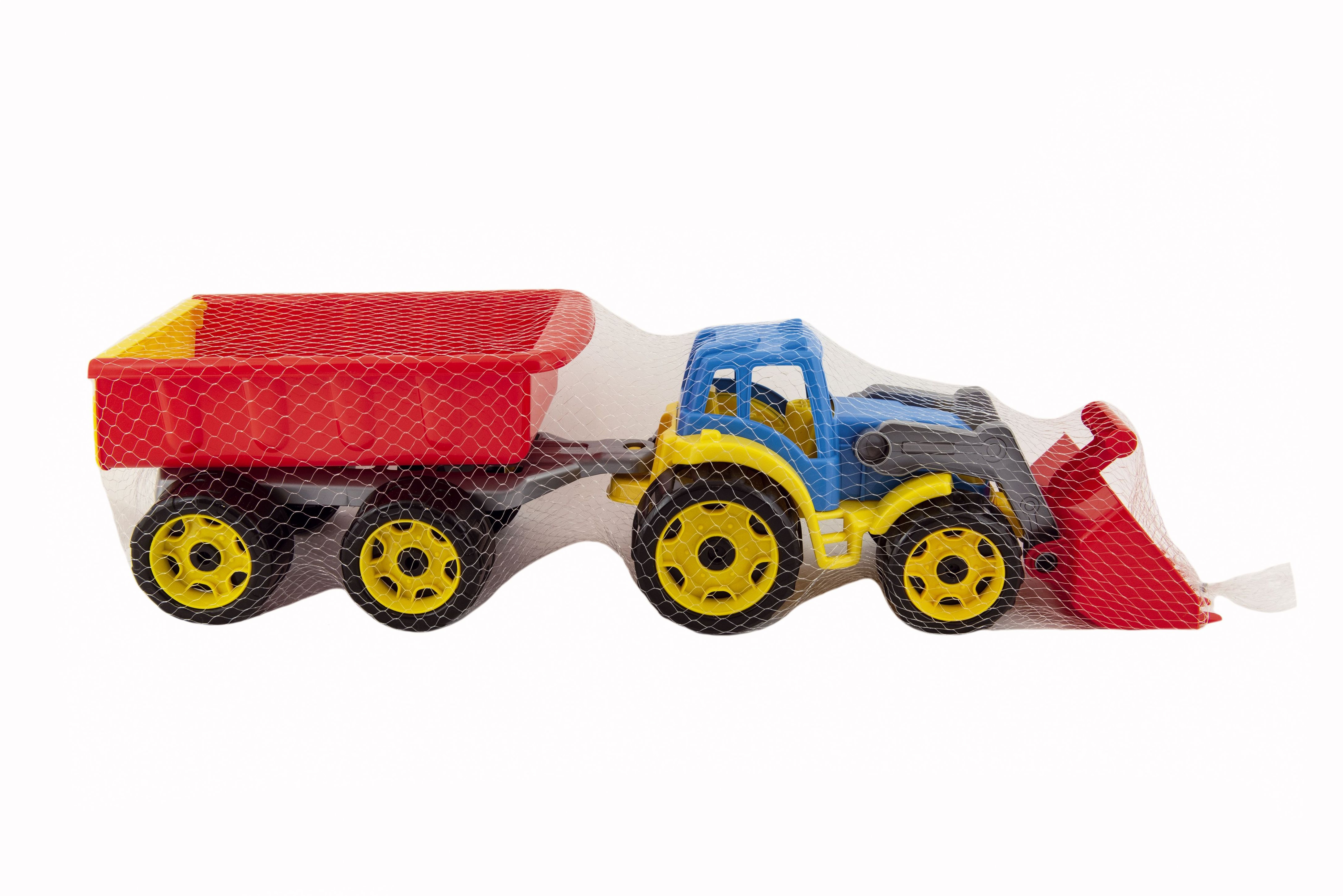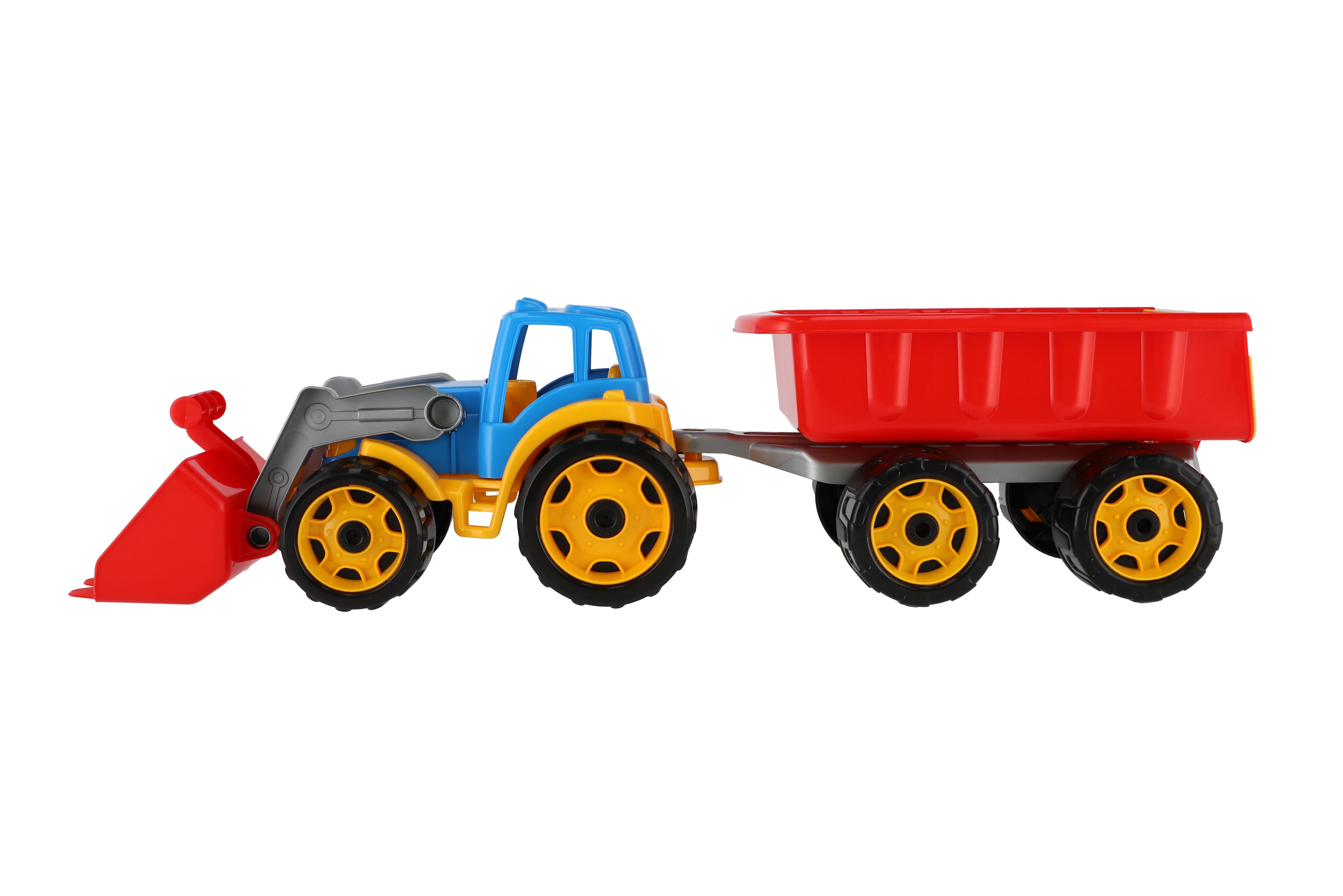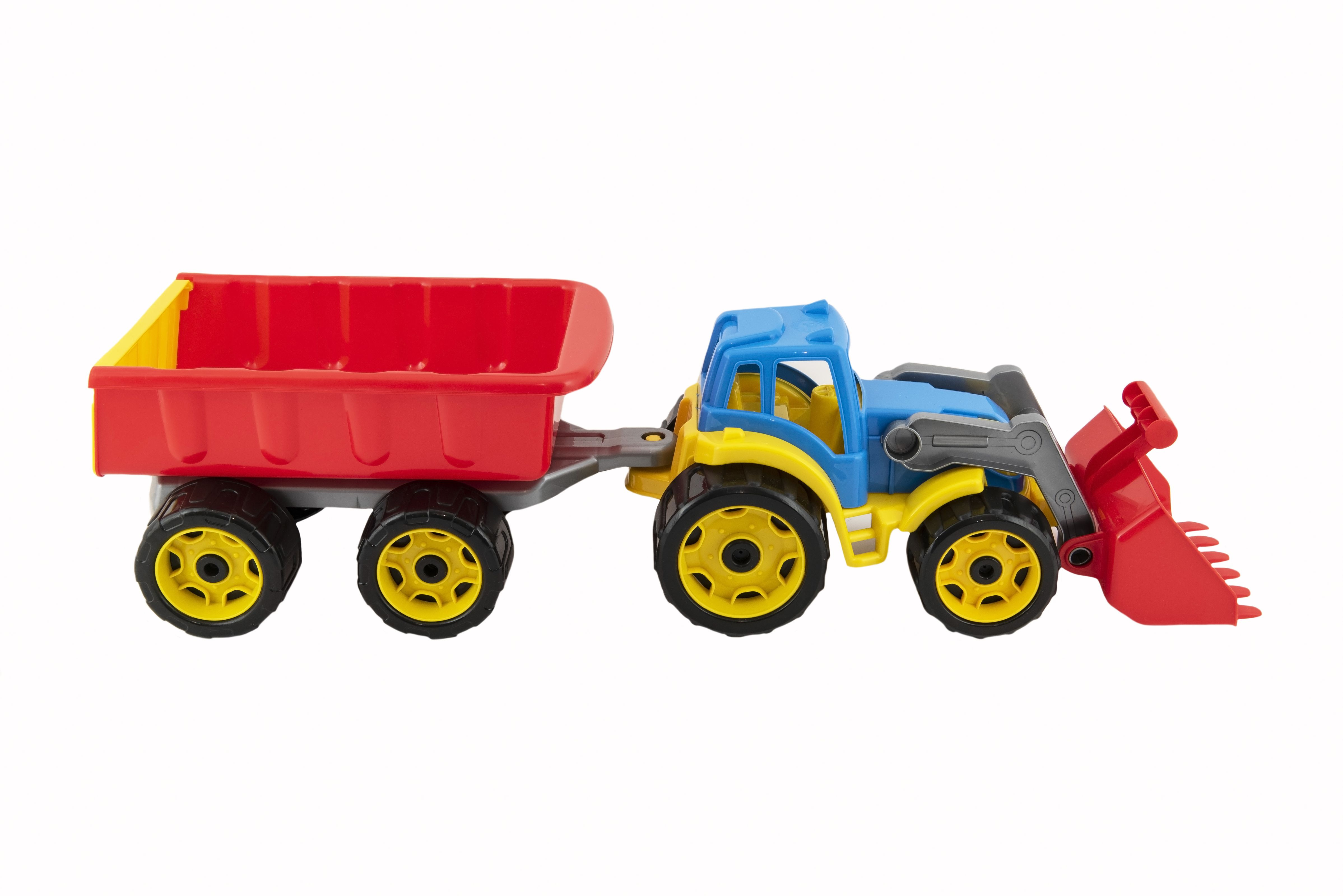 Barevný traktor s vlekem a lžící je vhodný pro každého malého zemědělce a je vyroben z kvalitního a odolného plastu. Užijte si spoustu zábavy s tímto traktorem také na pískovišti, který děti zabaví na dlouhé hodiny. Můžete převážet náklad z jedné strany pískoviště na druhou. Rozměry výrobku 61 x 16 x 16 cm. Vhodné pro děti od 3 let.
