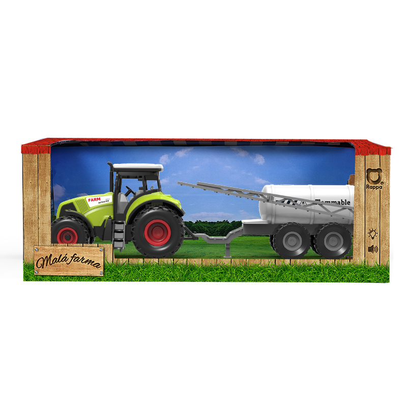 Rappa Traktor plastový se zvukem a světlem s vlečkou na postřik