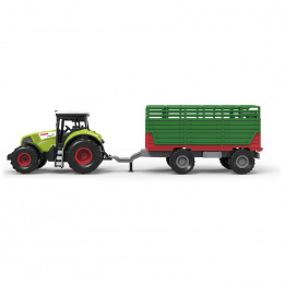 Moderní plastový traktor s vlečkou na seno, hračka z kolekce Moje malá farma. Nepostradatelný pomocník pro každého malého farmáře! Vlečku můžeš jednoduše odpojit a traktor využít k dalším pracím. Traktor jezdí na setrvačník a jeho délka včetně přívěsu je 37 cm. Zmáčknutím tlačítek traktor vydává reálné zvuky. Traktor vyžaduje 3 ks baterií typu AG13/LR44, které jsou součástí balení.