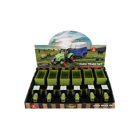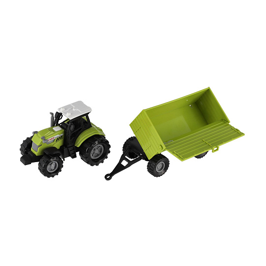 Vyjeď na pole s tímto realisticky zpracovaným plastovým traktorem s valníkem! Traktor je vybaven světelnými a zvukovými efekty na baterie a volným chodem pro snadné hraní. Skvělá hračka pro malé farmáře – doma i na zahradě. Délka traktoru s valníkem: 26 cm Vhodné pro děti od 3 let