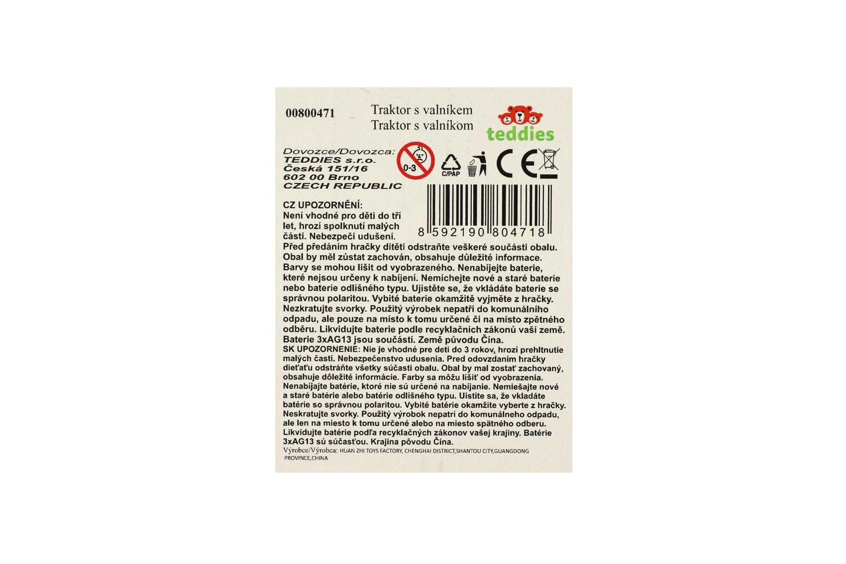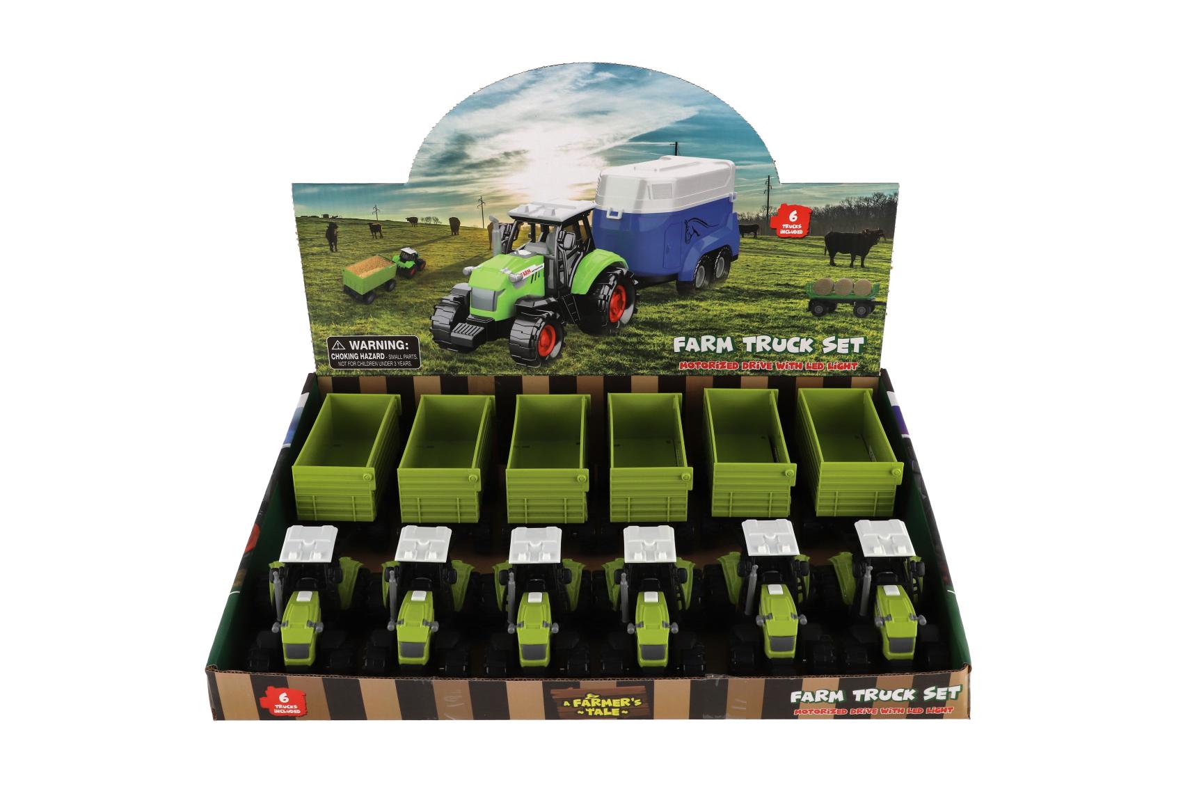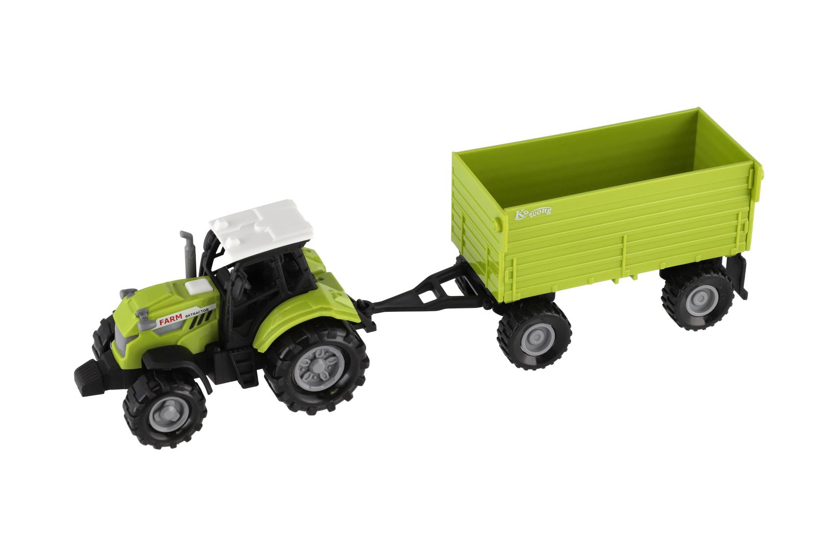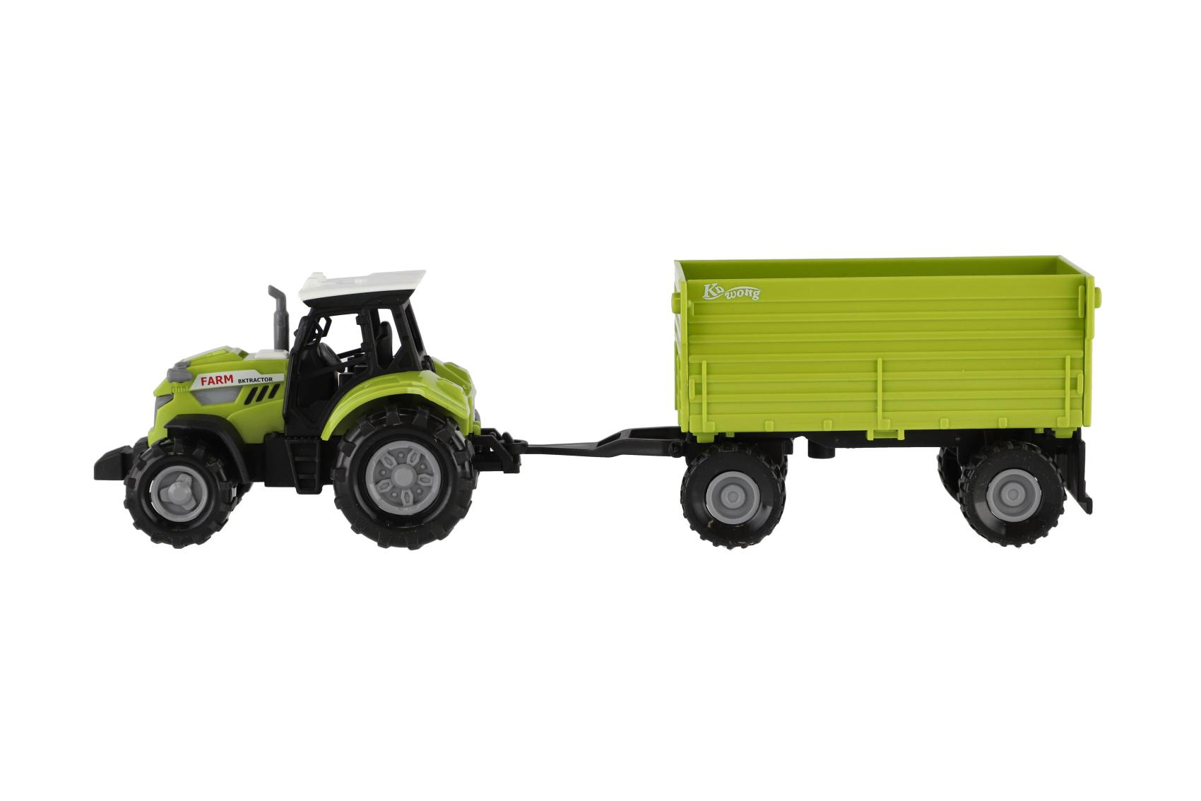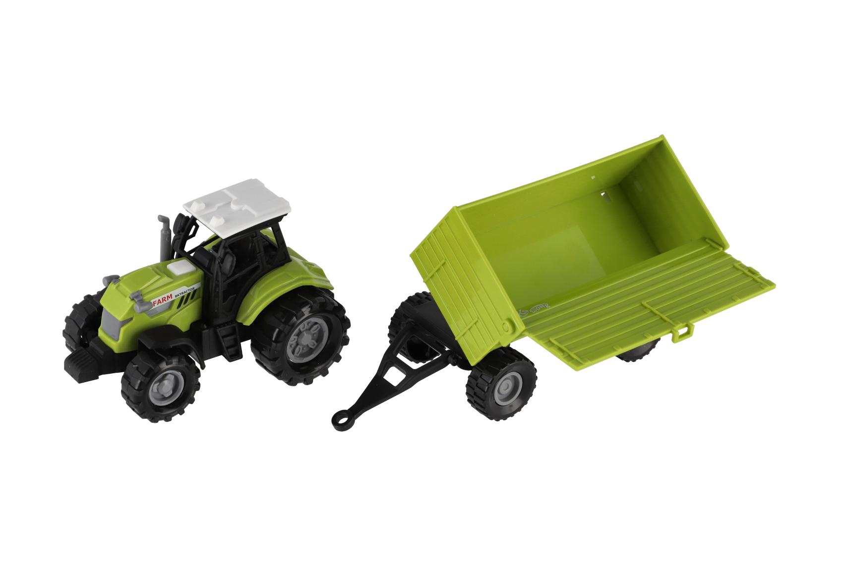 Vyjeď na pole s tímto realisticky zpracovaným plastovým traktorem s valníkem! Traktor je vybaven světelnými a zvukovými efekty na baterie a volným chodem pro snadné hraní. Skvělá hračka pro malé farmáře – doma i na zahradě. Délka traktoru s valníkem: 26 cm Vhodné pro děti od 3 let