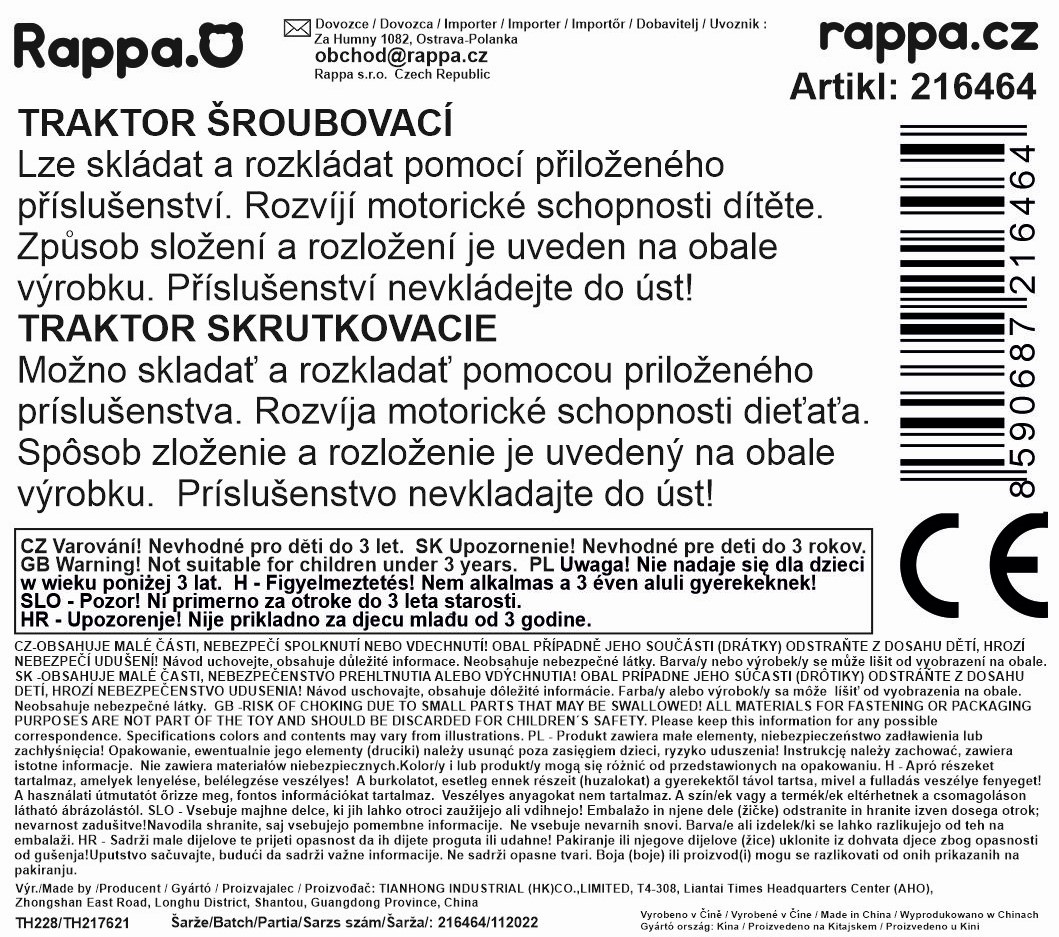 Rappa Traktor plastový se zvukem a světlem s vlečkou