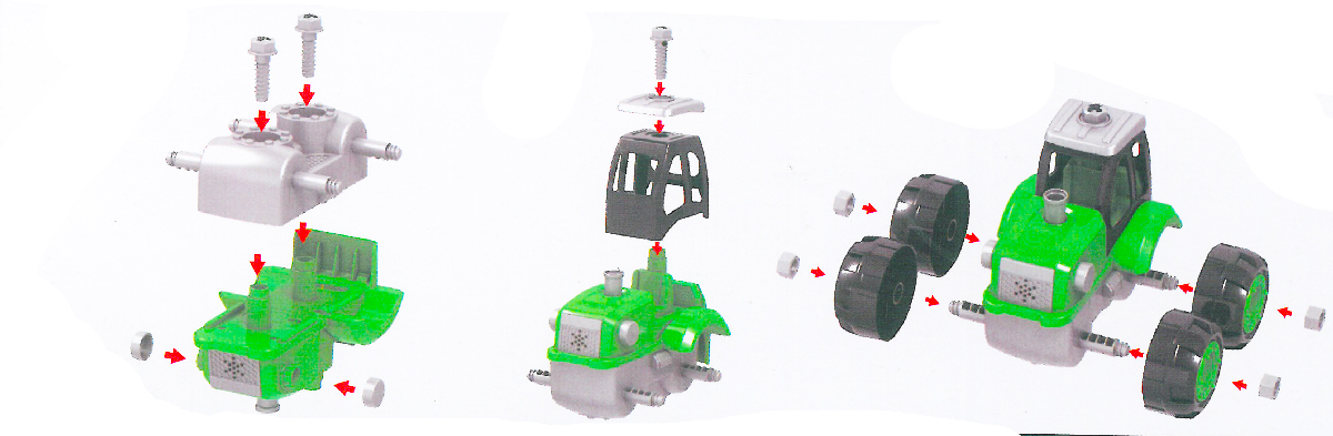 Zelený šroubovací traktor s vlečkou na dřevo. Pomocí šroubováku, který najdeš v balení, můžeš traktor snadno rozložit a sestavit si ho znovu. Velikost traktoru s vlečkou je 32 cm.