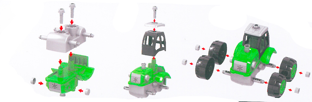 Moderní plastový farmářský traktor s vlečkou a balíky slámy, hračka z kolekce Moje malá farma. Vlečka se dá jednoduše odpojit a balíky sundat. Traktor jezdí na volný chod a jeho délka je 10 cm. Přívěs je v délce 12 cm, celková délka včetně přívěsu je 25 cm. Zmáčknutím tlačítka na traktoru vydává reálné zvuky spolu se světelným efektem. Tr