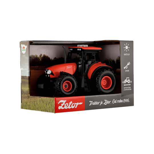Traktor Zetor plast 9x14cm na setrvačník na bat. se světlem se zvukem v krabici 18x12x10,5cm