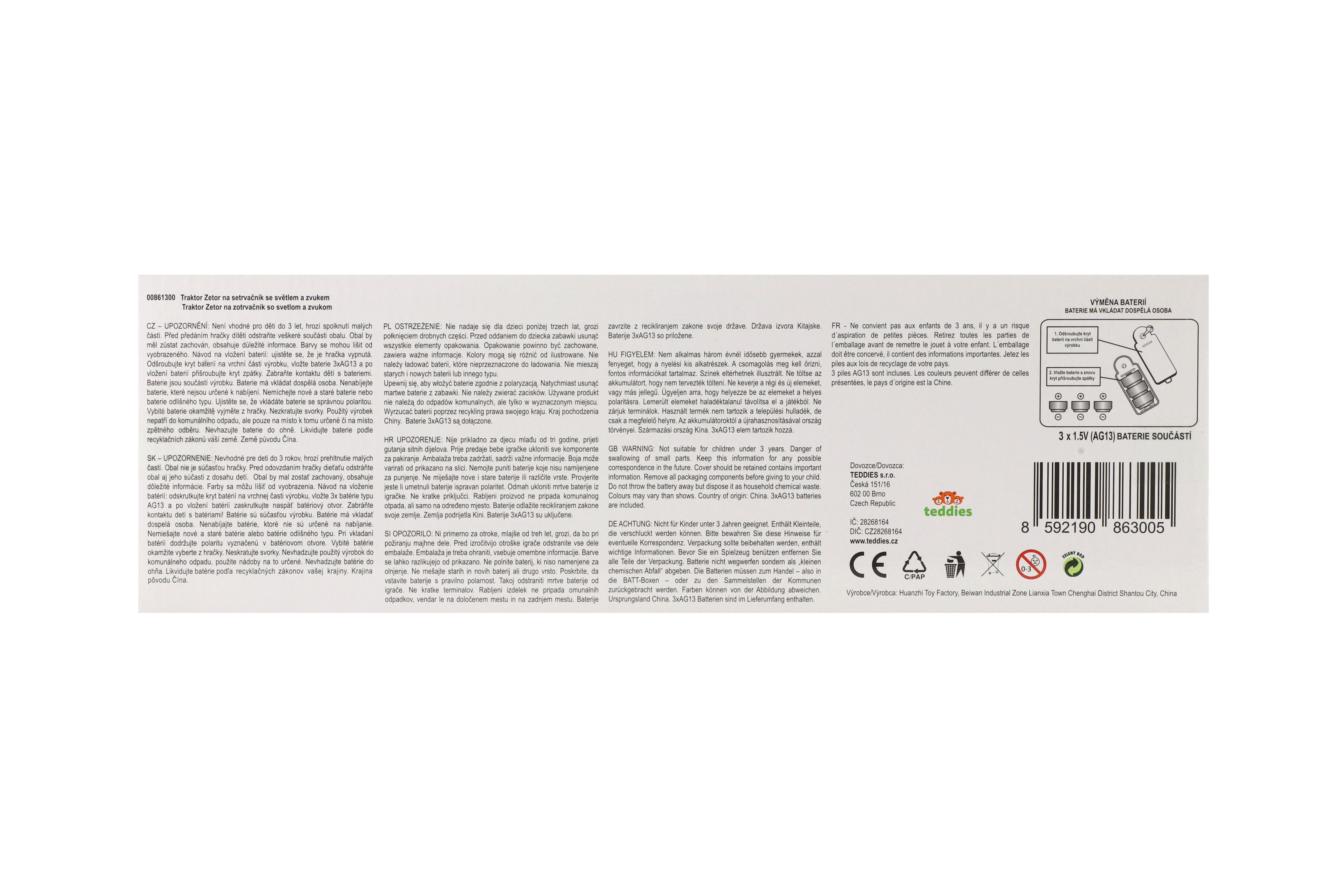 Krásný model zemědělského traktoru Zetor s dlouholetou tradicí, kterou musí milovat snad každý. Vyražte na pole s pořádným traktorem se světlem a zvukem! Traktor s vlekem na seno je nepostradatelný pomocník pro každého malého farmáře! Vlek můžeš jednoduše odpojit a traktor využít k dalším pracím. Traktor jezdí na setrvačník. Zmáčknutím tlačítek traktor vydává reálné zvuky a svítí mu světla. Hračka je na baterie 3x AG13, které jsou součástí balení. Velkost traktoru s valníkem: 36 cm Rozměr krabice: 39x13x13 cm Vhodné pro děti od 3 let