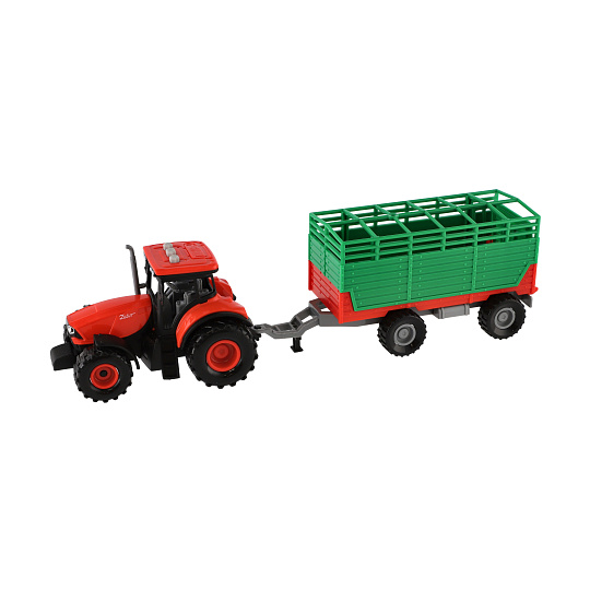 Traktor Zetor s vlekem plast 36cm na setrvačník na bat. se světlem se zvukem v krabici 39x13x13cm