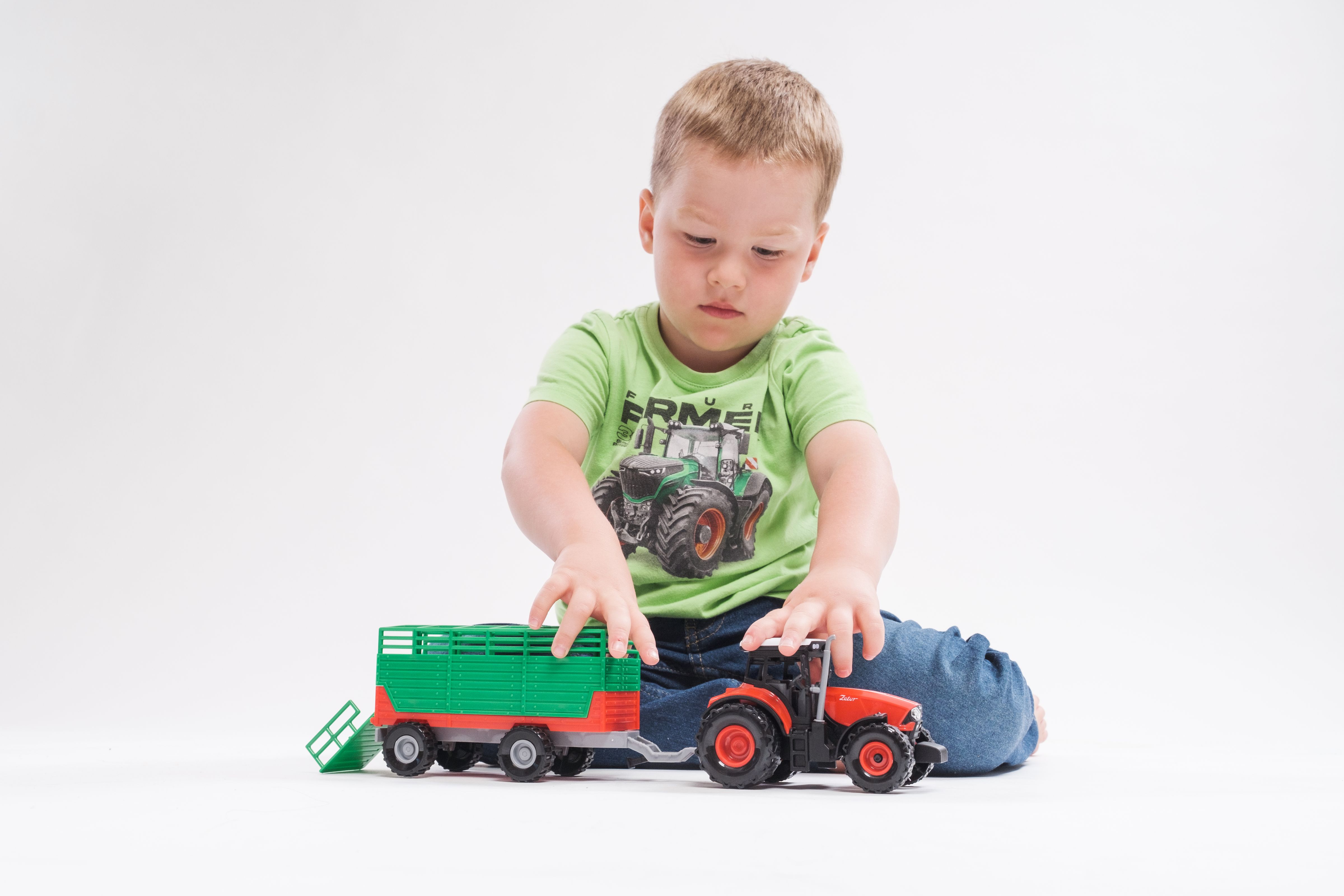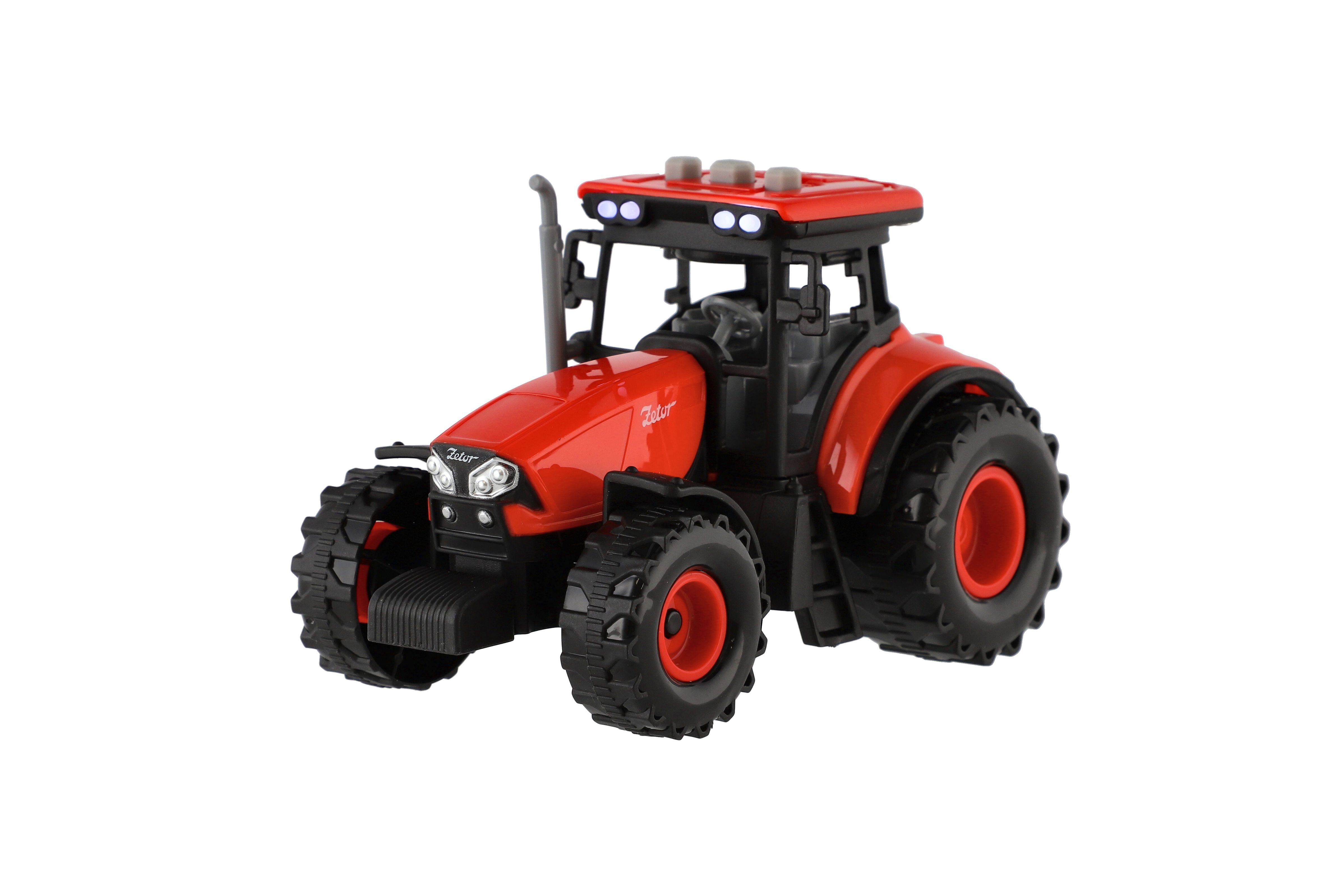 Krásný model zemědělského traktoru Zetor s dlouholetou tradicí, kterou musí milovat snad každý. Vyražte na pole s pořádným traktorem se světlem a zvukem! Traktor s vlekem na seno je nepostradatelný pomocník pro každého malého farmáře! Vlek můžeš jednoduše odpojit a traktor využít k dalším pracím. Traktor jezdí na setrvačník. Zmáčknutím tlačítek traktor vydává reálné zvuky a svítí mu světla. Hračka je na baterie 3x AG13, které jsou součástí balení. Velkost traktoru s valníkem: 36 cm Rozměr krabice: 39x13x13 cm Vhodné pro děti od 3 let