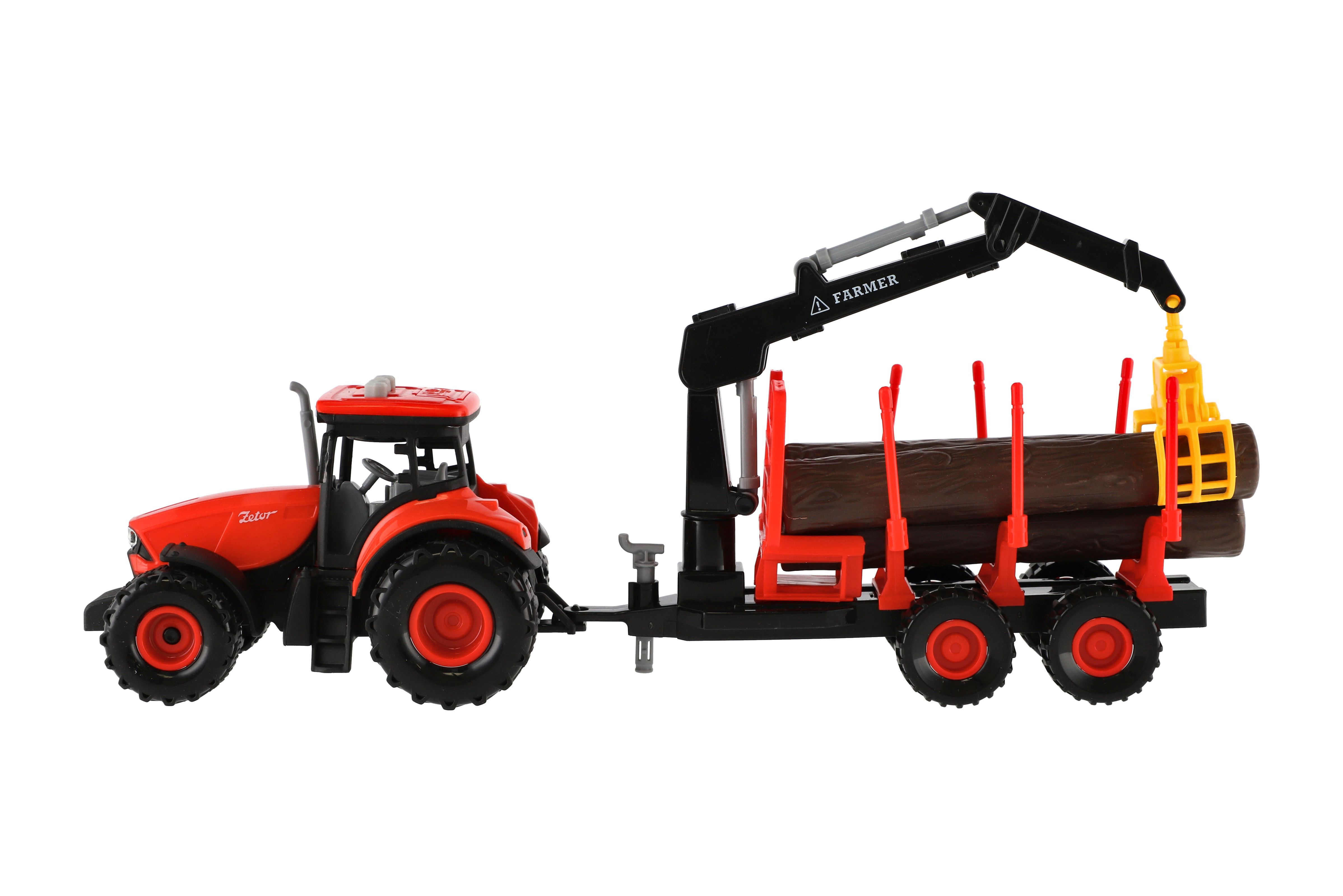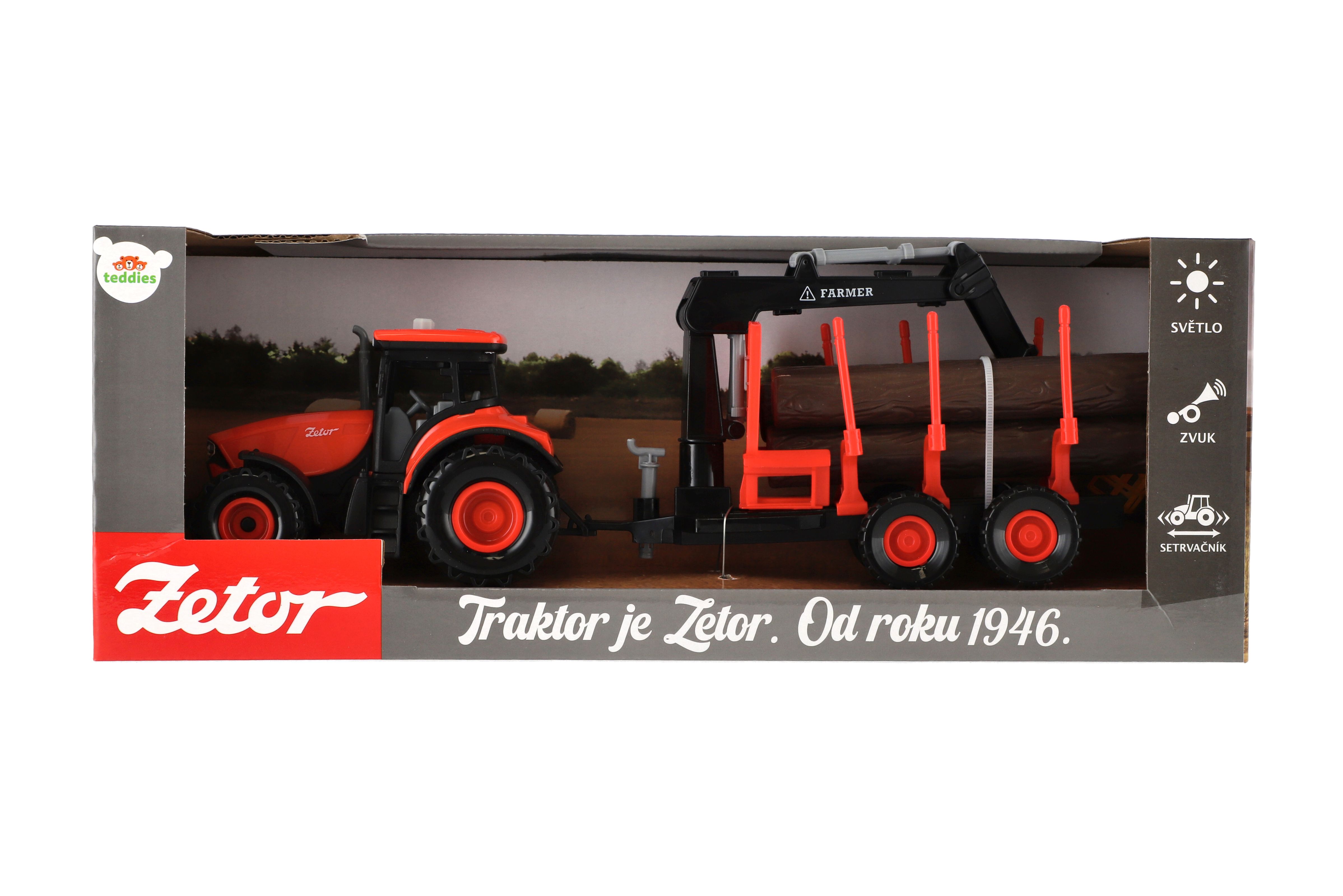 Traktor Zetor s vlekem s naklád. ramenem plast 36cm na setrvačník na bat. se svět. se zvuk. v krab.