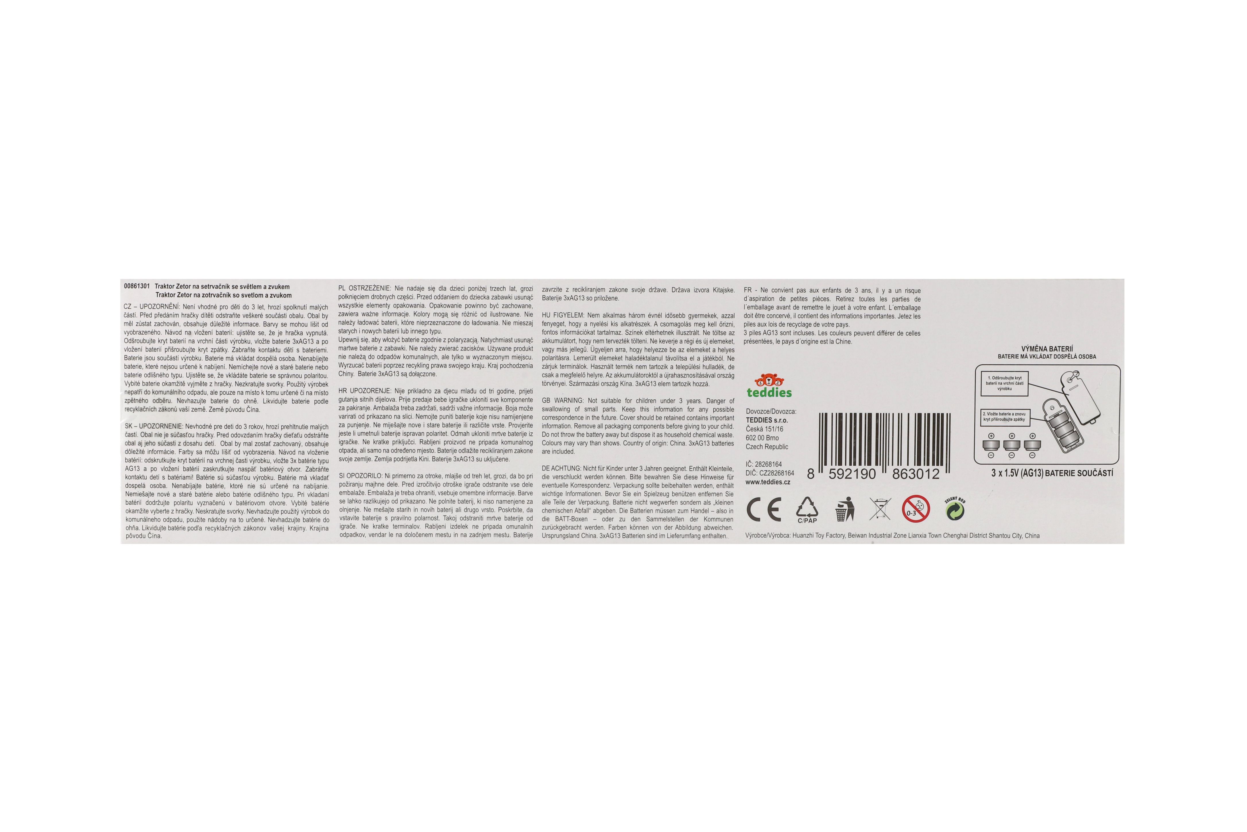 Krásný model zemědělského traktoru Zetor s dlouholetou tradicí, kterou musí milovat snad každý. Vyrazte do lesa s pořádným traktorem se světlem a zvukem! Traktor s vlekem s nákladním ramenem je nepostradatelný pomocník pro každého malého lesníka! Vlek můžeš jednoduše odpojit a traktor využít k dalším pracím. Traktor jezdí na setrvačník. Zmáčknutím tlačítek traktor vydává reálné zvuky a svítí mu světla. Hračka je na baterie 3x AG13, které jsou součástí balení. Velkost traktoru s valníkem: 36 cm Rozměr krabice: 39x13x13 cm Vhodné pro děti od 3 let