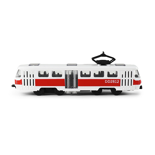 Plastová tramvaj MHD o délce cca 16 cm potěší všechny malé milovníky dopravních prostředků. Díky setrvačníkovému pohonu stačí tramvaj jemně popostrčit a sama se rozjede, což přináší spoustu zábavy při hraní. Tramva má mechanicky otevíratelné prostřední dveře, které umožňují ještě více vtáhnout děti do hry a vytvářet vlastní příběhy z městského provozu.