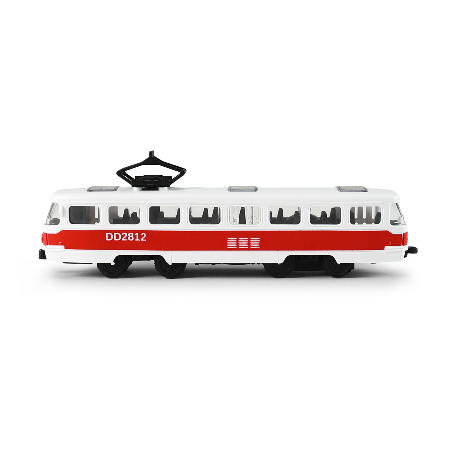 Plastová tramvaj MHD o délce cca 16 cm potěší všechny malé milovníky dopravních prostředků. Díky setrvačníkovému pohonu stačí tramvaj jemně popostrčit a sama se rozjede, což přináší spoustu zábavy při hraní. Tramva má mechanicky otevíratelné prostřední dveře, které umožňují ještě více vtáhnout děti do hry a vytvářet vlastní příběhy z městského provozu.
