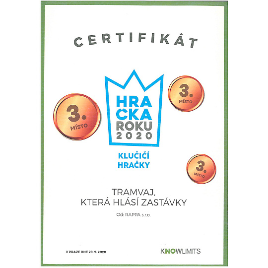 Rappa Tramvaj která hlásí zastávky česky 28 cm PRAGUE
