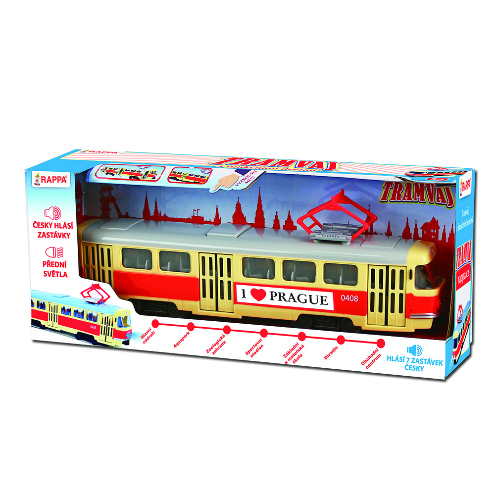 Rappa Tramvaj která hlásí zastávky česky 28 cm PRAGUE