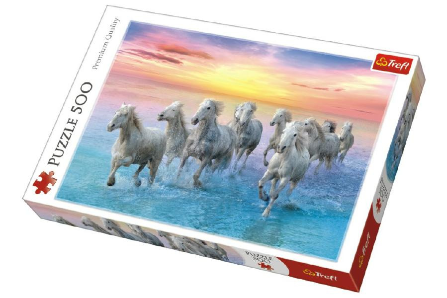 Trefl Puzzle Cválající bílé koně 500 dílků 48x34cm v krabici 40x27x4,5cm