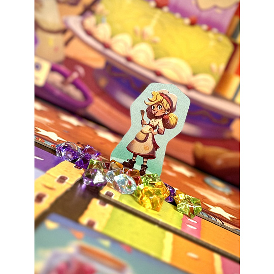 - Díky barevnému zpracování, výrazným komponentům a atraktivnímu vizuálu působí hra na stole doslova jako skutečný dort plný cukrové fantazie.