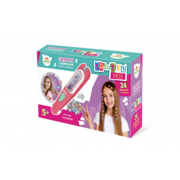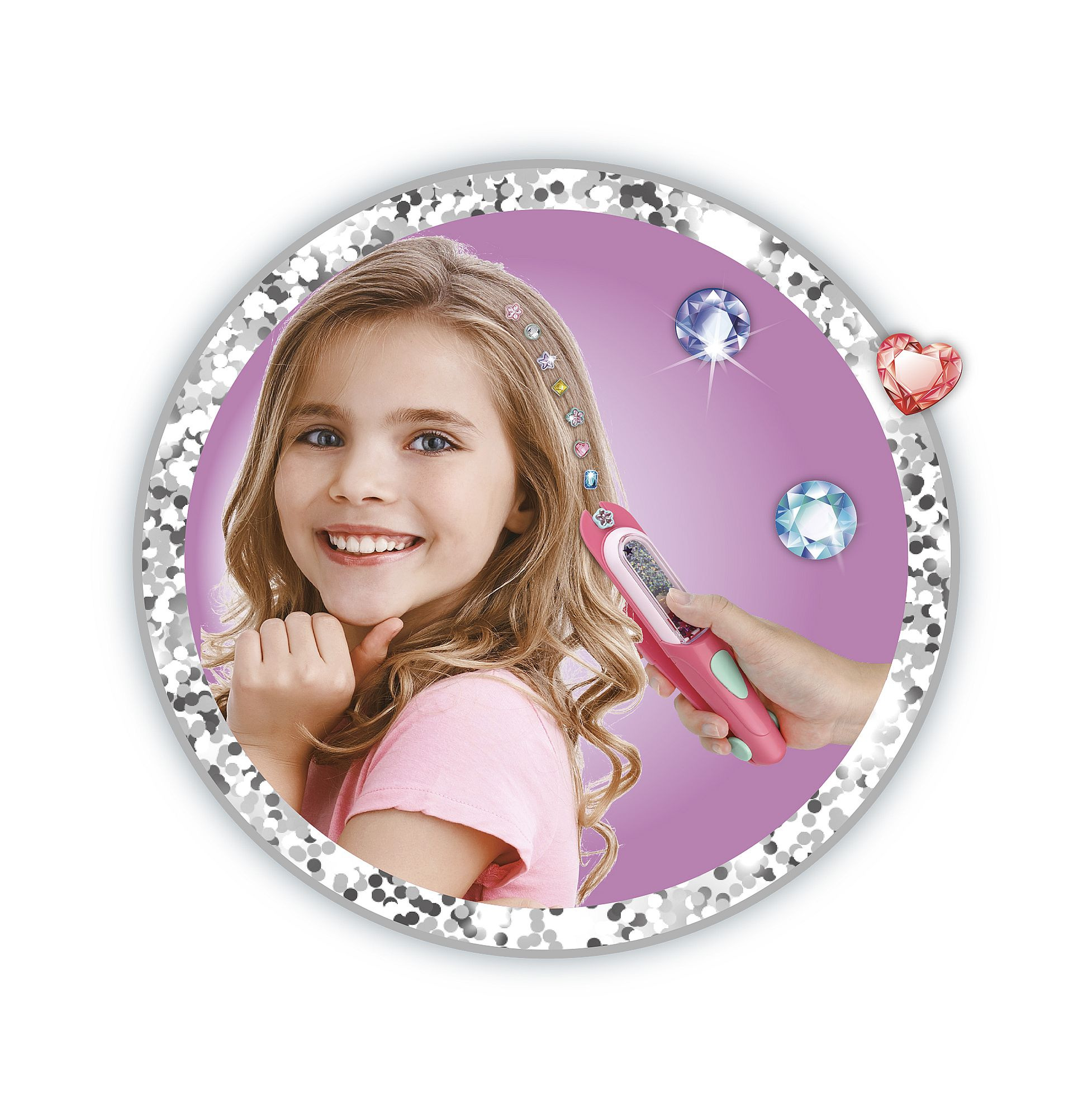 Kreativní sada 24 diamantů a 24 spon s aplikátorem. Diamant vložte do vrchní části aplikátoru. Do spodní části vložte přezku. Do přezky ve spodní části vložte slabý pramen vlasů a umístěte ho tam, kde chcete diamant připevnit. Zmáčkněte aplikátor, abyste diamant na vlasech zafixovali přezkou. Drahokam zůstane na pramenu vlasů připevněný. Rozměry balení 22 x 12 x 6 cm Vhodné pro děti od 5 let