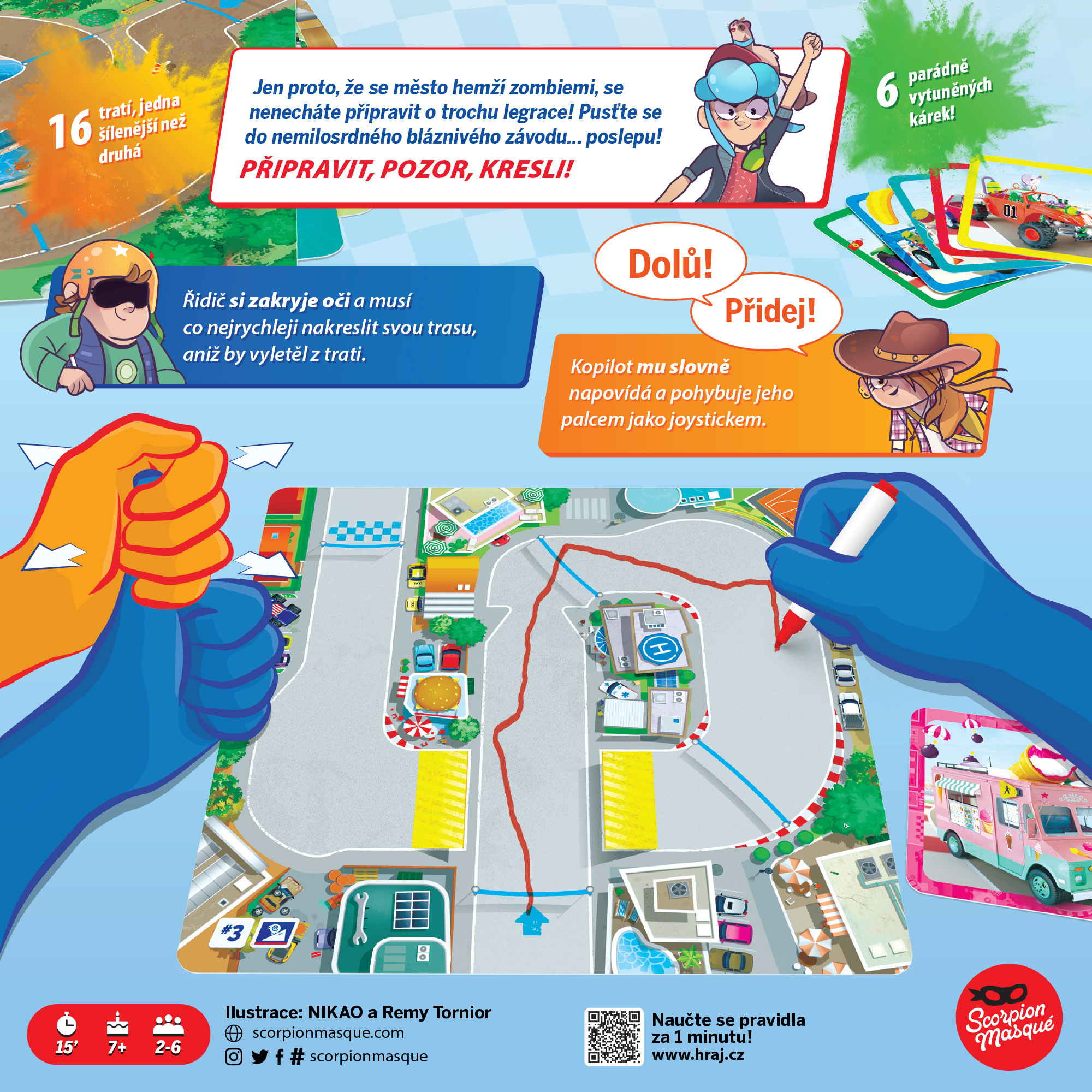 - Vytvořte 2 týmy po 2 až 3 hráčích. Týmy mohou být různě početné. V každém týmu zvolte prvního řidiče a dejte mu fix a masku. Ostatní hráči představují kopiloty (role se budou v průběhu hry střídat).