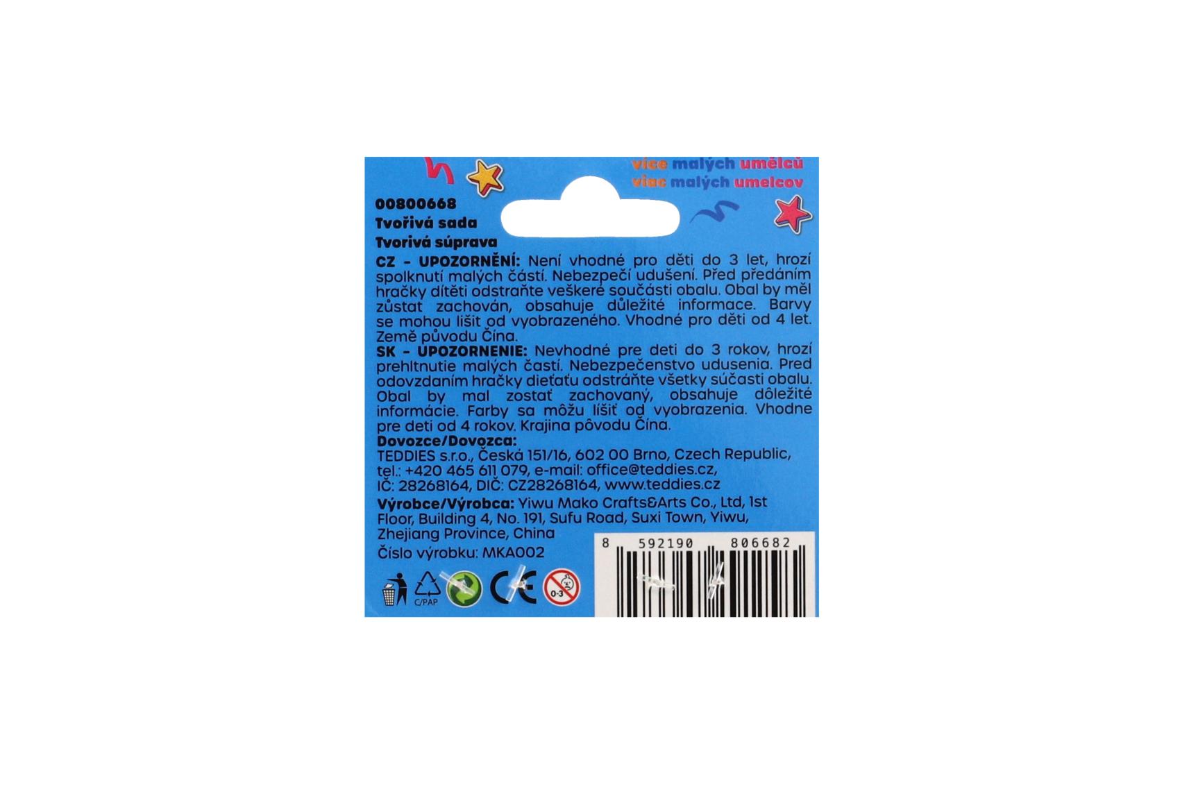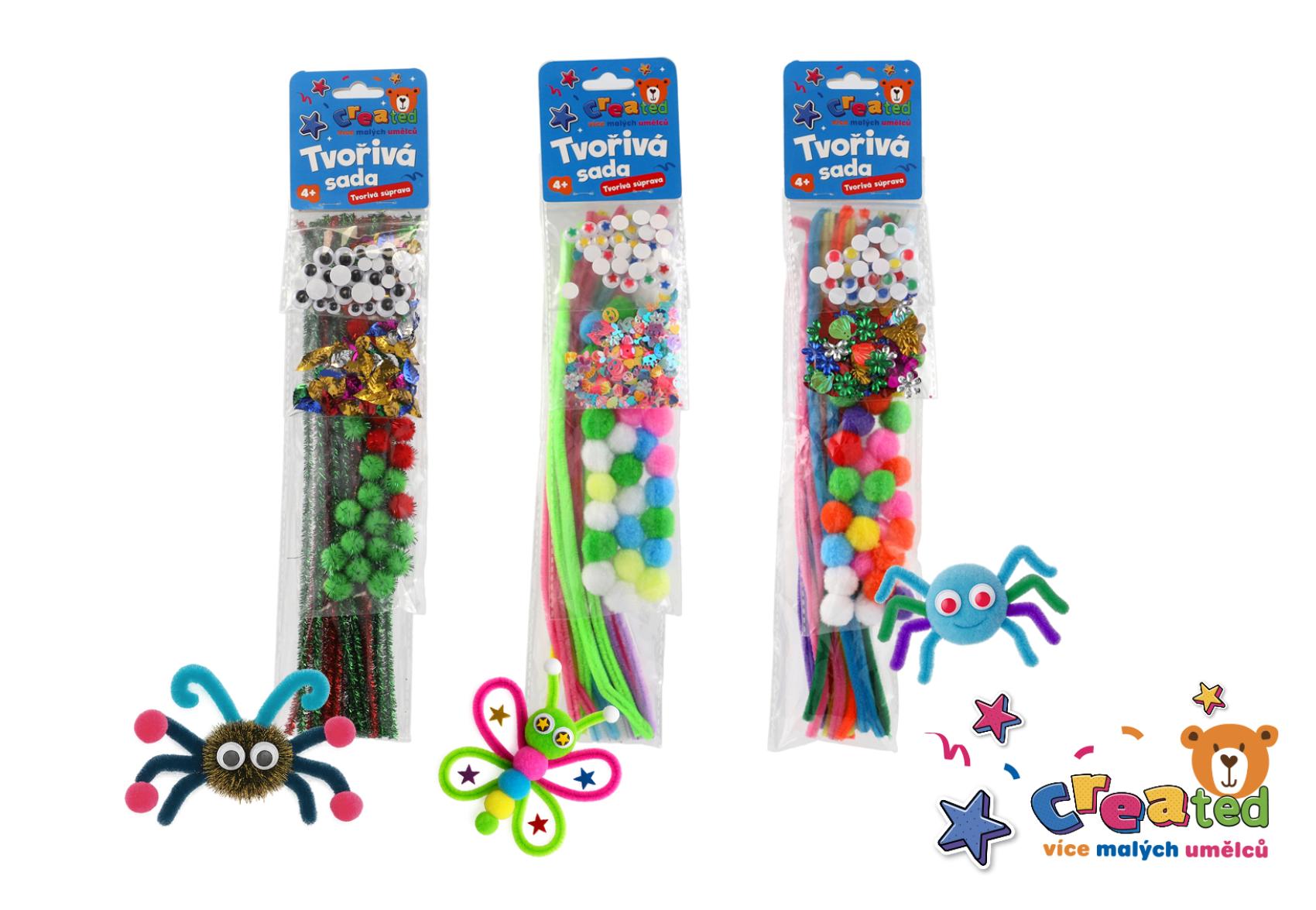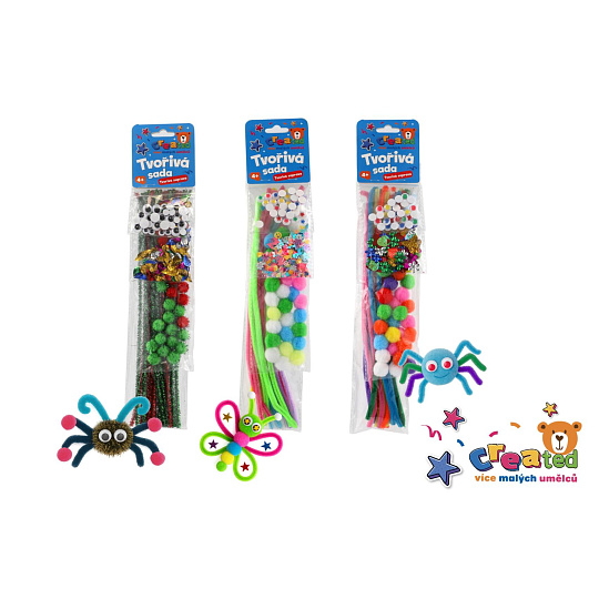 Rozvíjejte fantazii a tvořivost svých dětí s barevnou tvořivou sadou created. Sada obsahuje vše potřebné k výrobě nejrůznějších zvířátek, postaviček, květin, motýlků nebo jiných veselých dekorací. Ideální pro malé kutily, kteří rádi tvoří a objevují svět barev a tvarů. Každá sada obsahuje jiné barevné kombinace a doplňky – každý malý umělec si tak přijde na své. Stačí jen trocha lepidla a fantazie, a může vzniknout pavouk, motýlek nebo cokoliv, co vás napadne.