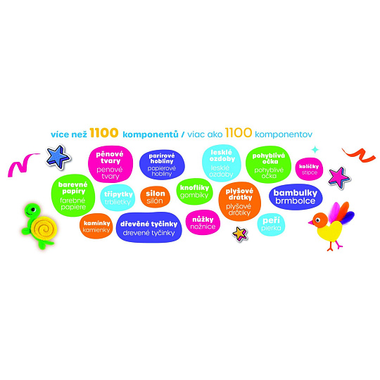 Barevná tvořivá sada Created je určena pro všechny malé umělce od 4 let. Obsahuje více než 1100 různých komponentů, se kterými si děti mohou vytvořit vlastní obrázky, zvířátka, květiny, rakety a další originální výtvory.