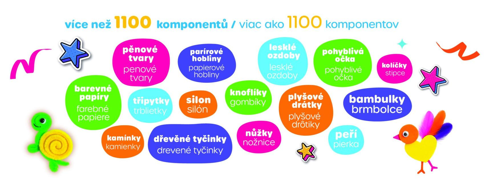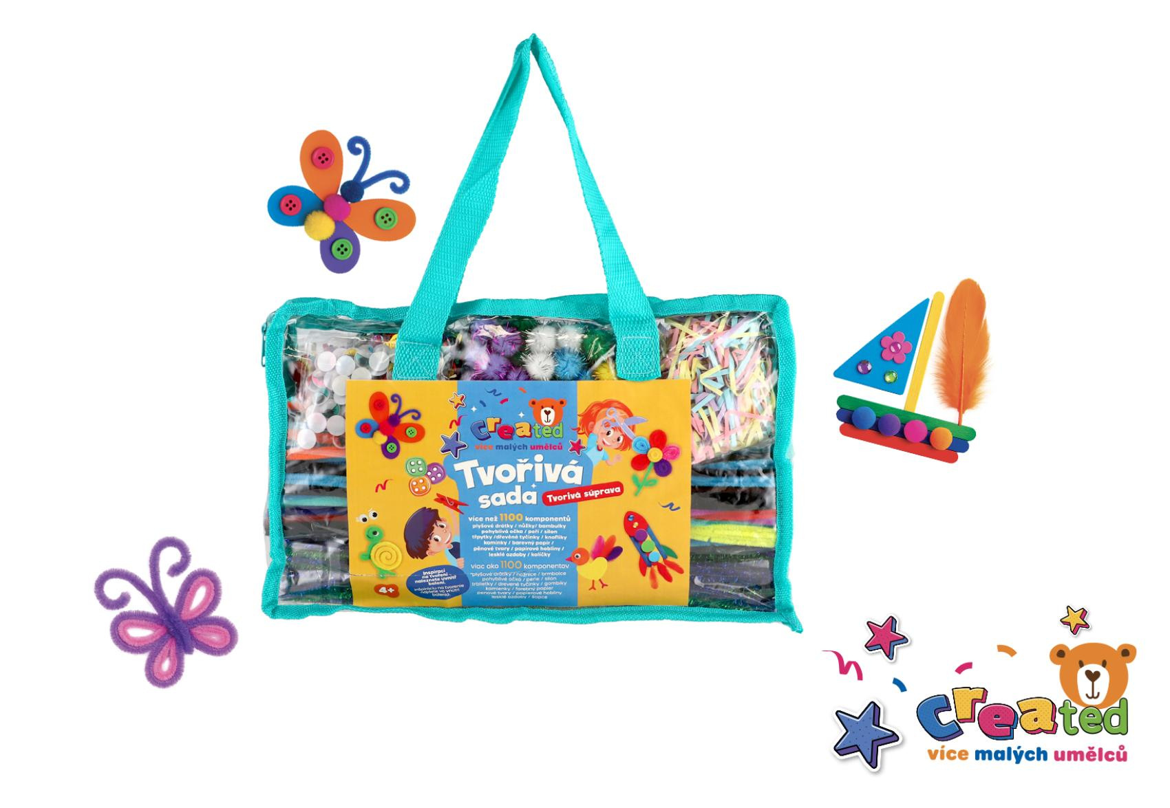 Barevná tvořivá sada Created je určena pro všechny malé umělce od 4 let. Obsahuje více než 1100 různých komponentů, se kterými si děti mohou vytvořit vlastní obrázky, zvířátka, květiny, rakety a další originální výtvory.