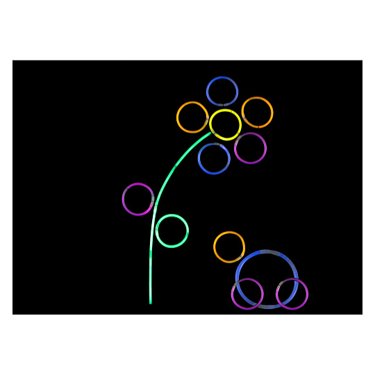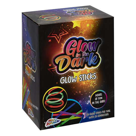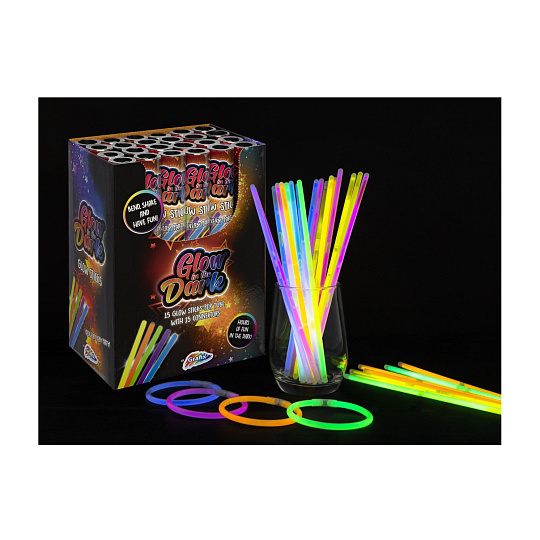 Sada 15 ks svítících tyčinek, baleno v tubě, součástí balení je i 15 kusů spojovačů - k vytvoření svítících náramků. Tyčinku ohněte po celé délce (neohýbejte příliš silně), aby zářila. Po pár minutách se zcela rozsvítí. Ohni, zatřepej a užívej si zábavu.