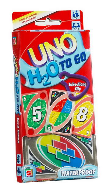 Pevné plastové karty jsou odolné vůči vodě a zábavu si s nimi může užít každý, a to doma i venku na cestách. UNO H2O Na cesty obsahuje také praktickou karabinu, která karty udrží při sobě a dá se připojit k plážové tašce, batohu nebo ke kempovací výbavě. Nyní budete připraveni hrát UNO, kdykoliv se vám zachce!