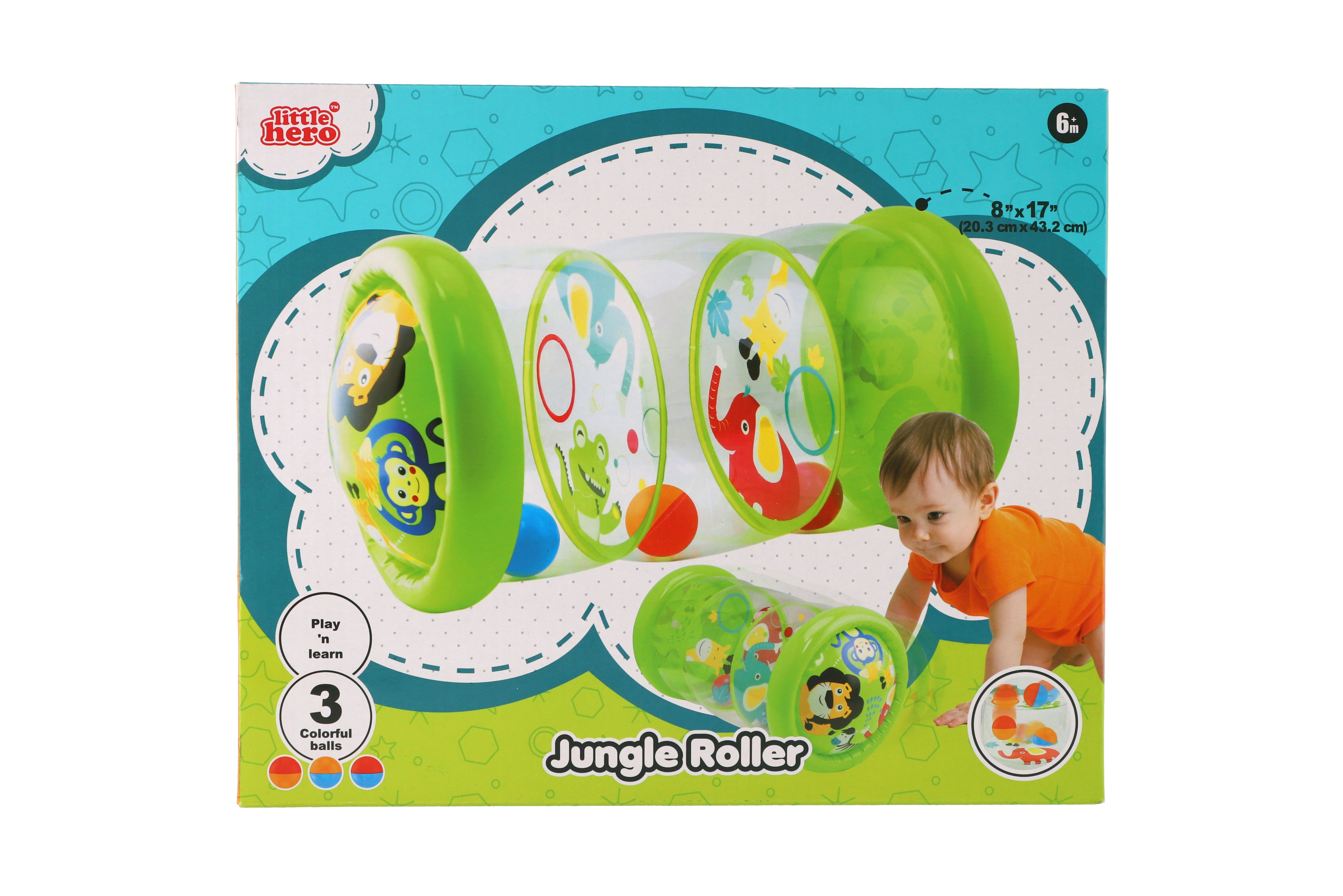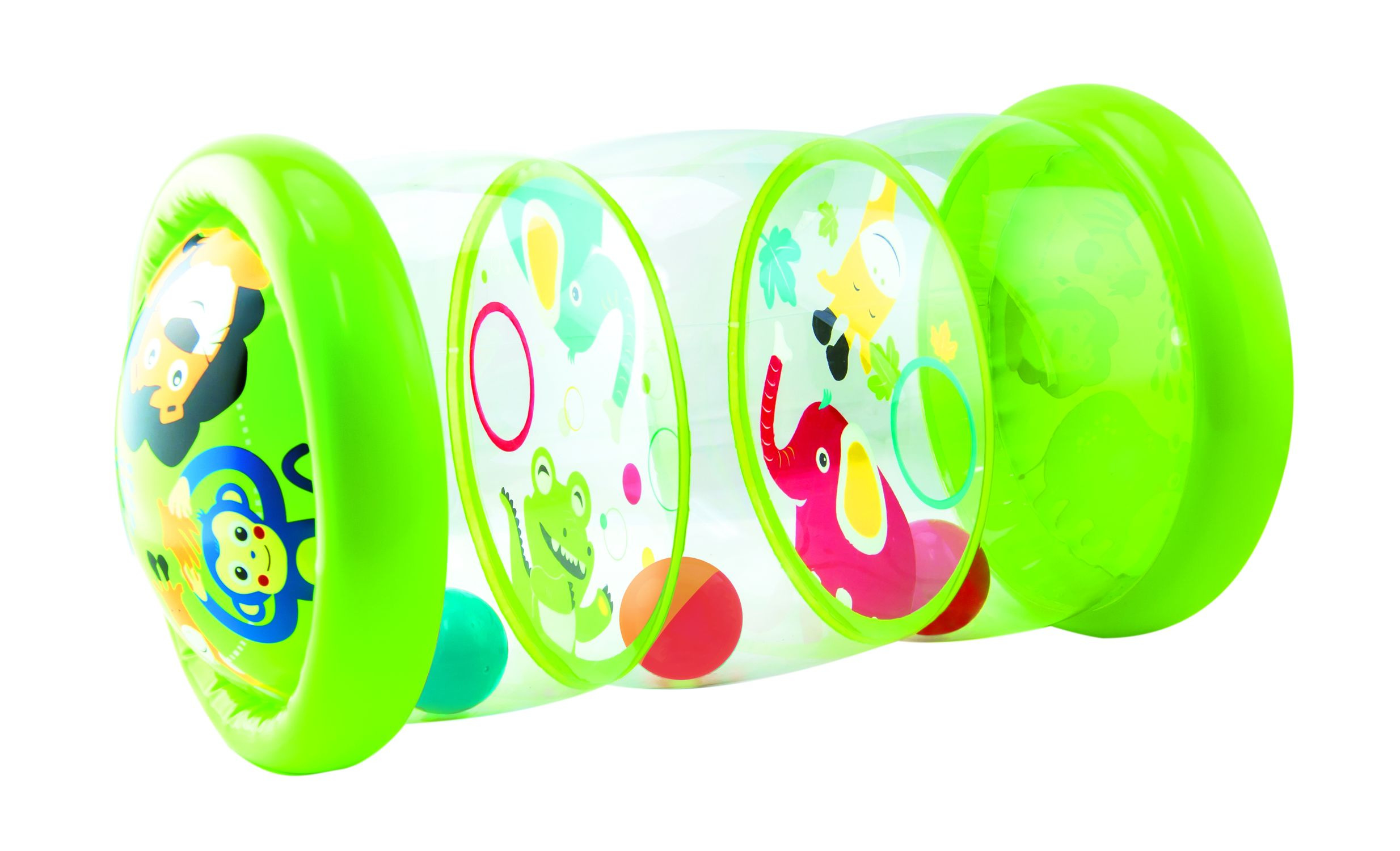 Edukační válec povzbuzuje děti k lezení, obratnosti i prvním krůčkům. Děti také upoutají míčky uvnitř válce a veselé obrázky zvířátek. Nafukovací válec podporuje lezení dětí a poskytuje oporu, která je základním předpokladem k tomu, aby se dítě pokoušelo postavit na nohy. Ve vnitřní části jsou tři míčky. Pro větší děti je válec vhodný např. k vodním hrátkám. Rozměry balení 29 x 24 x 6 cm. Vhodné pro děti od 6 měsíců.