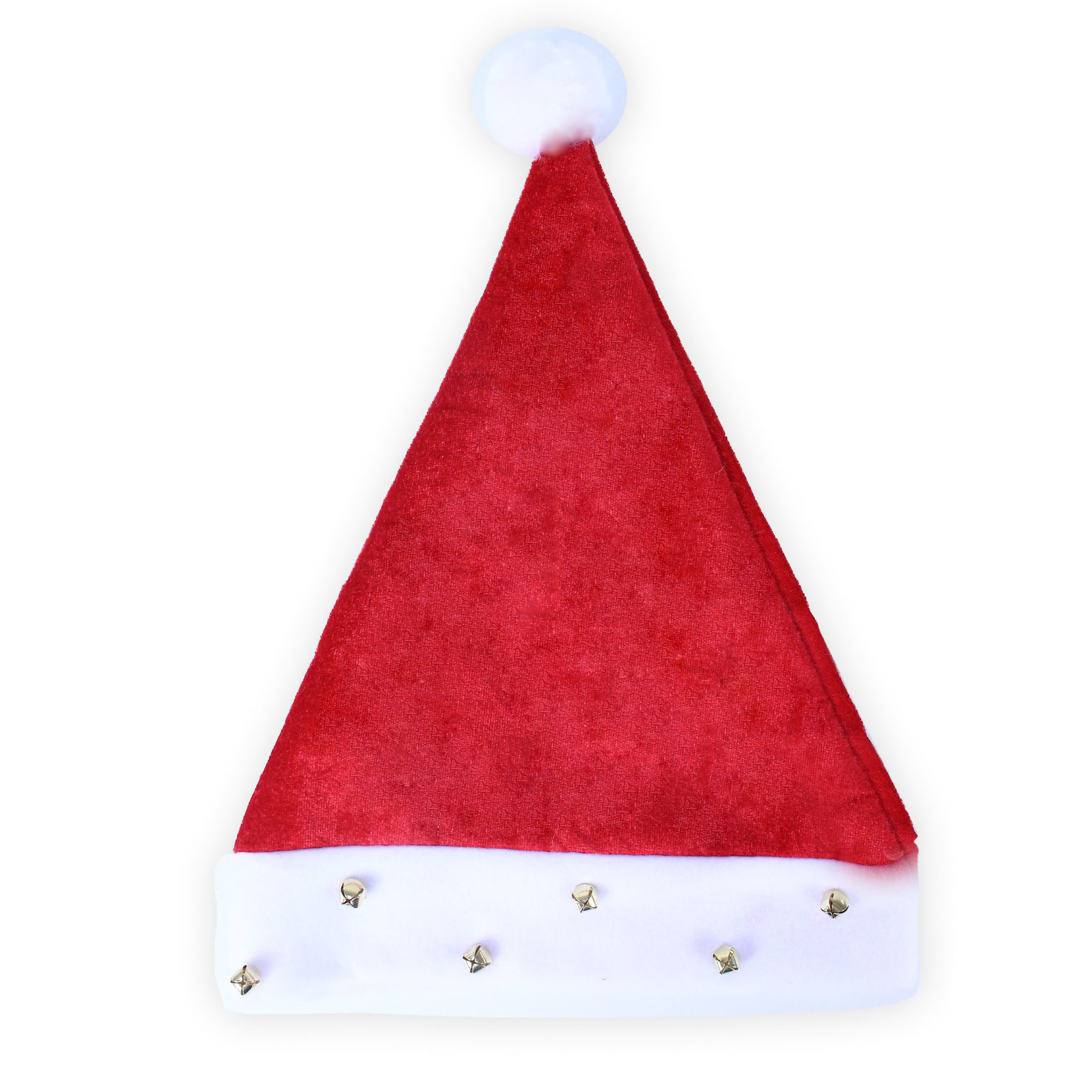 Stylová vánoční čepice s bílým lemováním, zdobená rolničkami a bambulkou. Ideální doplněk ke kostýmu nebo jen tak na vánoční večírek!