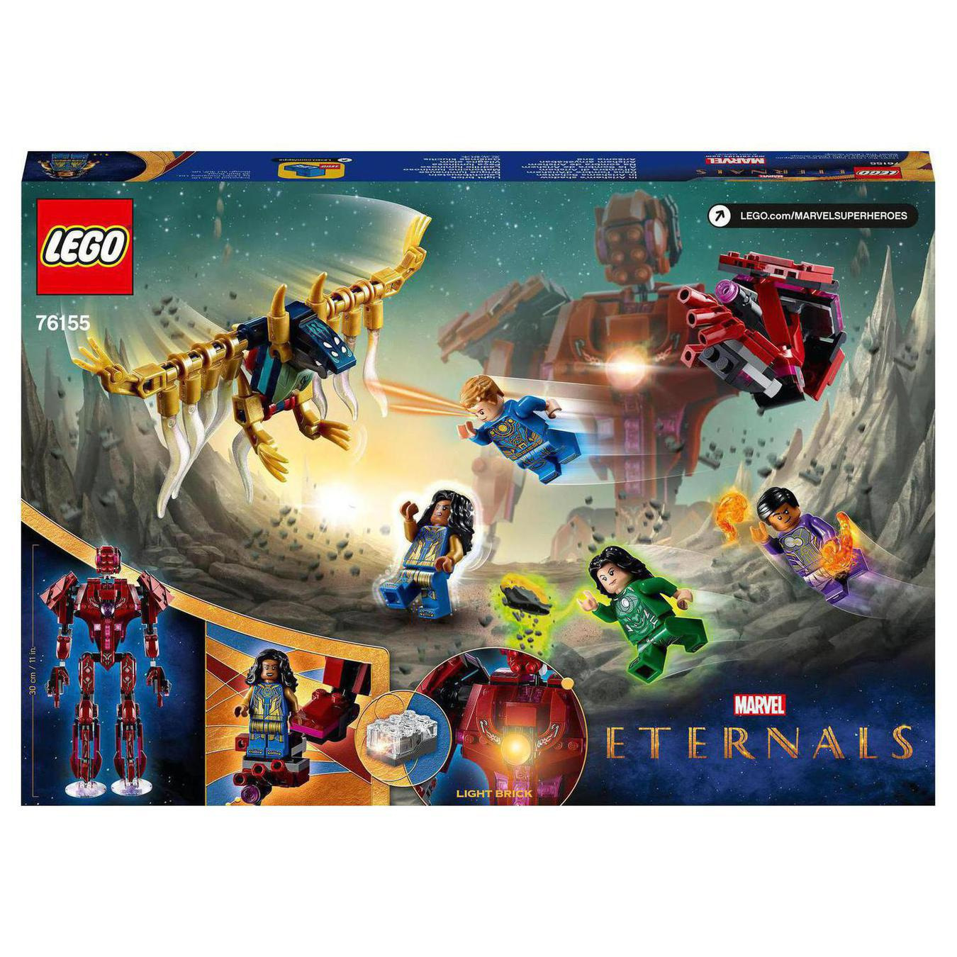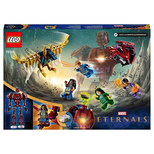 Děti mohou spojit své síly se 4 Eternaly a porazit společně netopýra Devianta. Eternalové mají parádní schopnosti: Ajak dokáže jako jediná komunikovat s Celestialy, mocnými mimozemskými bytostmi; Sersi umí přeměnit hmotu na cokoli, co si zamane; Ikaris má nadlidskou sílu a Kingo dokáže pracovat se zemskou energií. Sada obsahuje také pohyblivou figurku Celestiala, která v ruce udrží minifigurku Eternala. A pokud hračku kupujete pro fanouška minifigurek, upozorňujeme, že tato LEGO sada jako jediná obsahuje minifigurky Ajak a Kingoa!