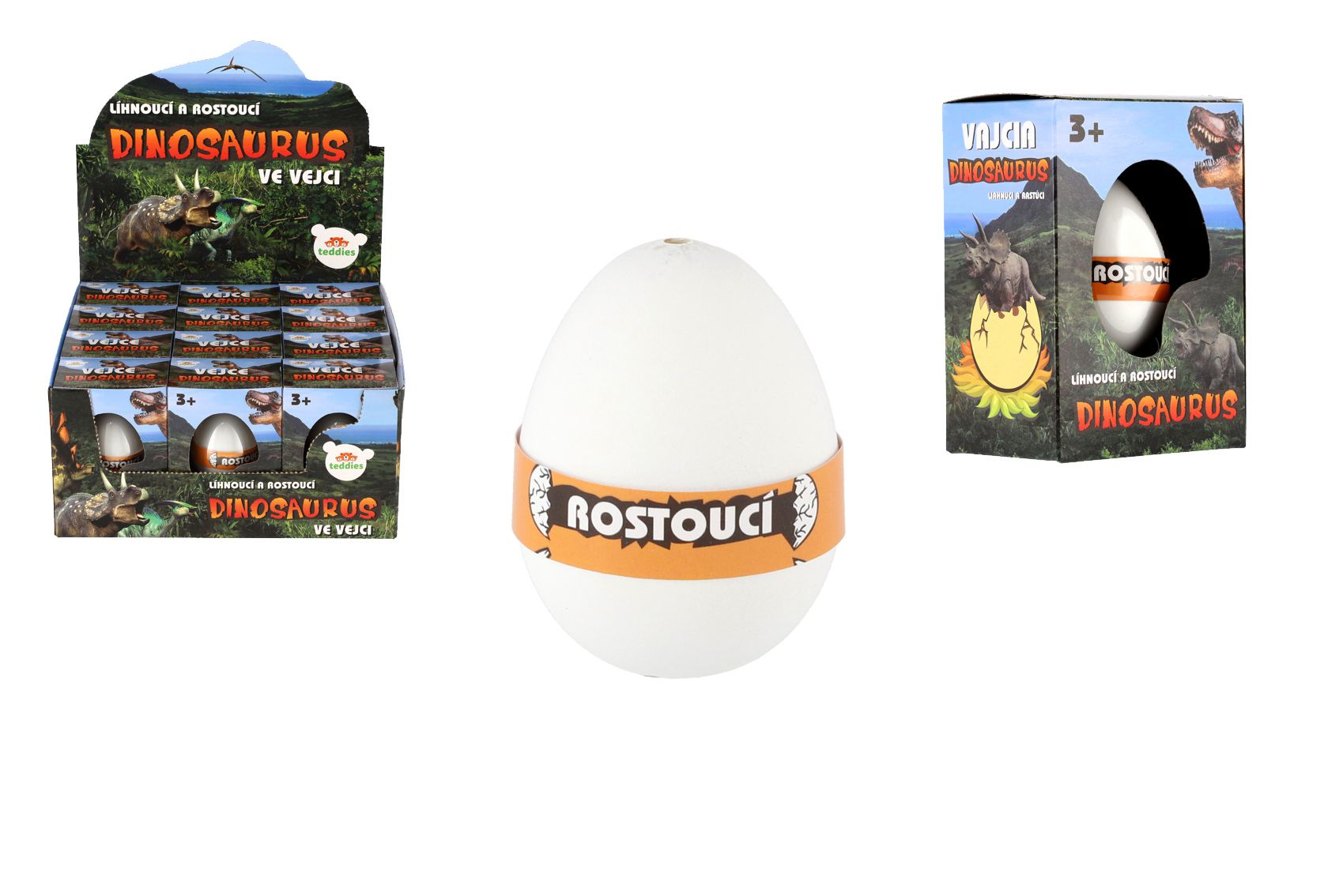 Perfektní dárek pro nadšence dinosaurů a také pro milovníky překvapení. Ve vejci je ukryto překvapení ve formě dinosaura. Aby se ale z vajíčka vyklubal, je nutné ho ponořit do misky s vodou. Přibližně za 24 - 48 hodin skořápka popraská a dinosaurus se začne klubat. Postupně tak mohou děti pozorovat, jak se z vajíčka se líhne dinosaurus. Bude to T-Rex, stegosaurus nebo brontosaurus? Nebo nějaký úplně jiný dinosaurus? Překvapení se vyklube cca za 72 hodin. Rozměr krabičky: 7,5 x 10,5 x 5 cm Vhodné pro děti od 3 let