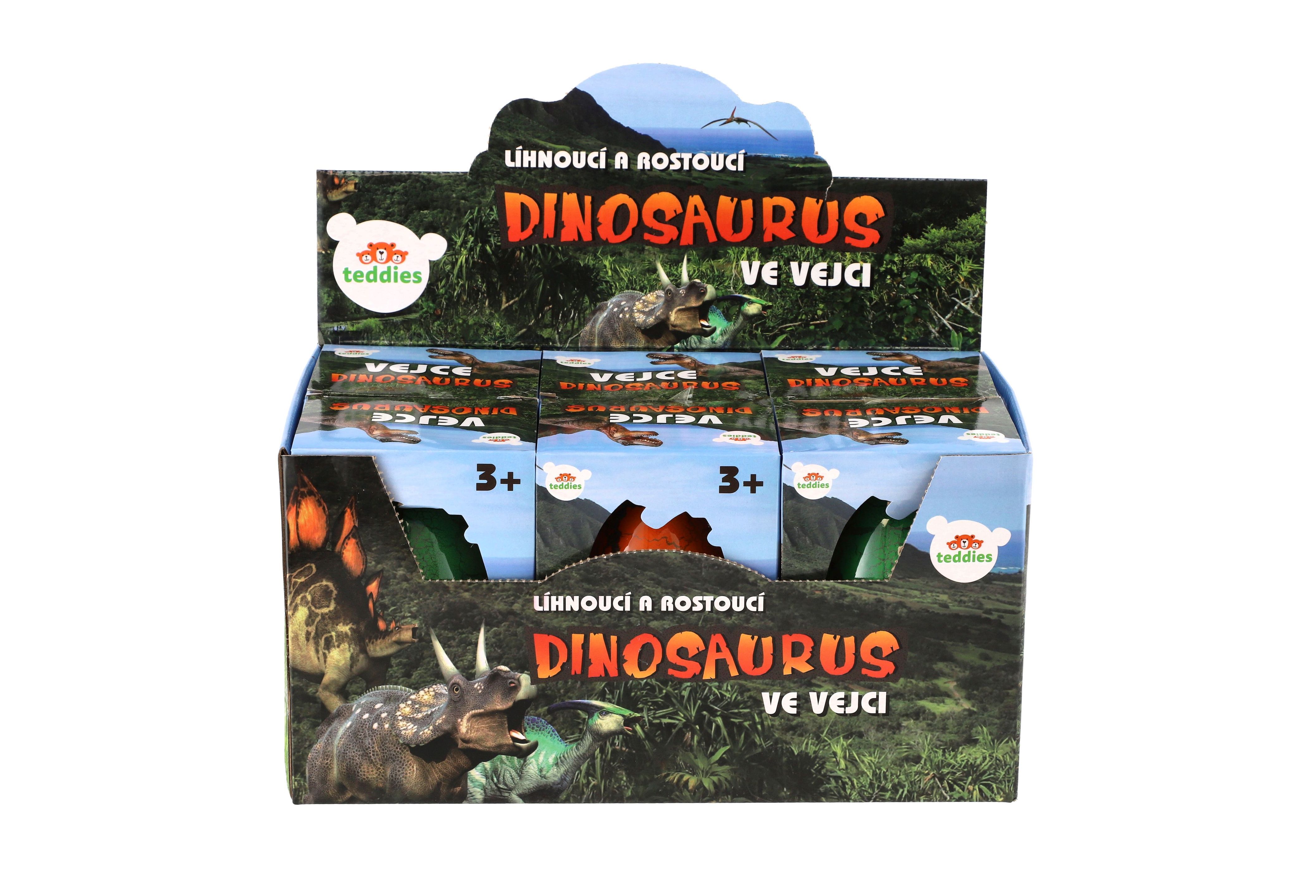 Teddies Vejce líhnoucí a rostoucí dinosaurus plast 2 barvy v krabičce 10x15cm