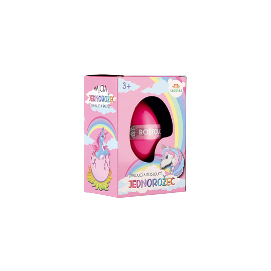 Perfektní dárek pro obdivovatelky jednorožců a také pro milovnice překvapení. Ve vejci je ukryto překvapení ve formě jednorožce. Aby se ale z vajíčka vyklubal, je nutné ho ponořit do misky s vlažnou vodou. Přibližně za 24 - 48 hodin skořápka popraská a jednorožec se začne klubat. Postupně tak mohou děti pozorovat, jak se z vajíčka líhne. Jak bude vypadat oblíbený jednorožec se dozvíte za cca 72 hodin. Rozměr krabičky: 7,5 x 10,5 x 5 cm Vhodné pro děti od 3 let